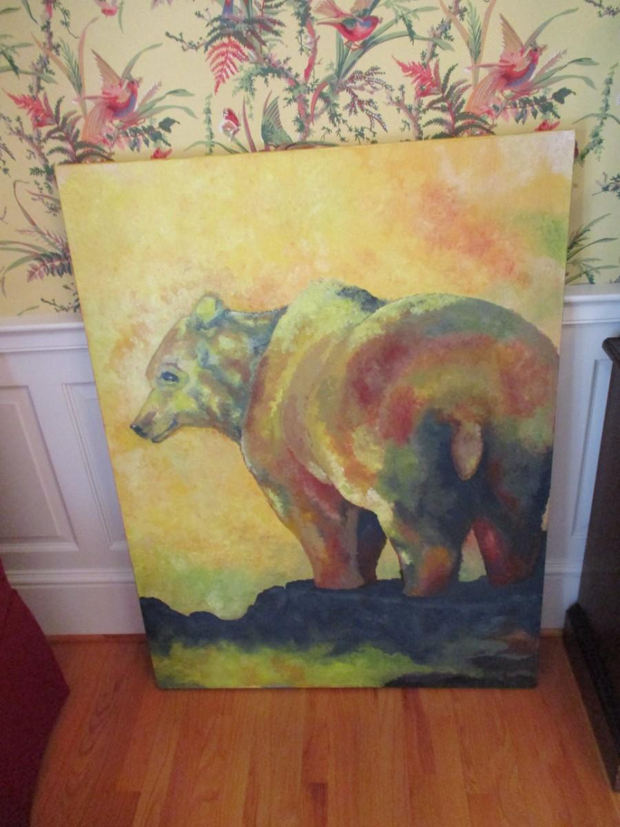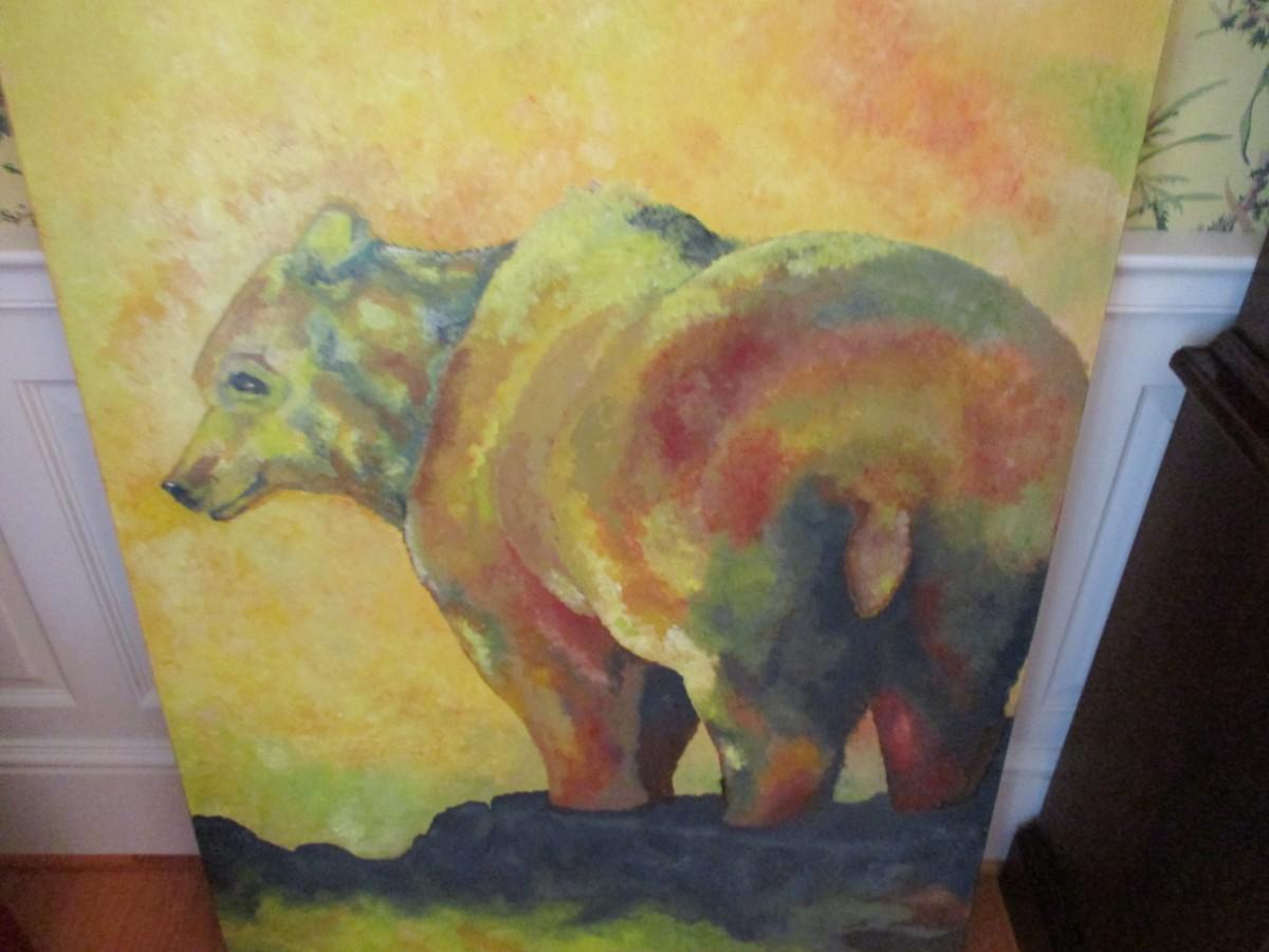 Wall Art Colorful Bear 0n Canvas over Wood Frame