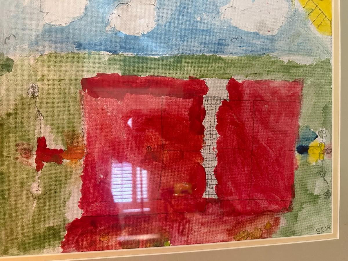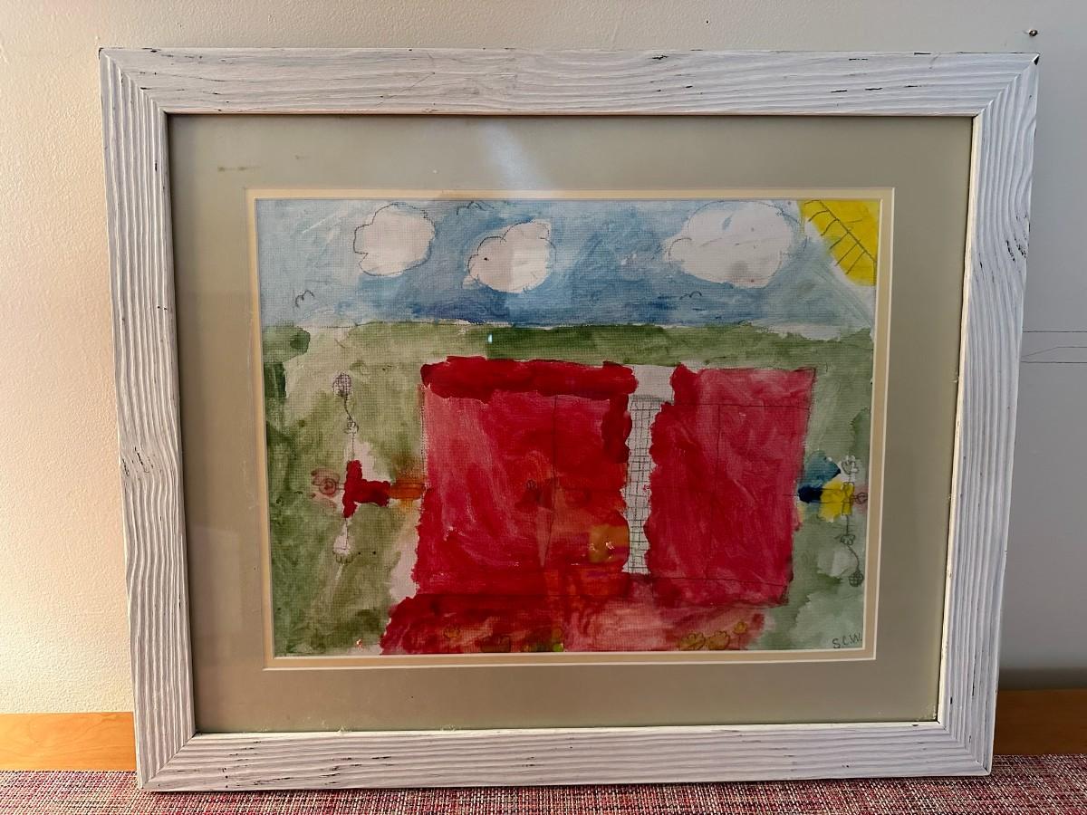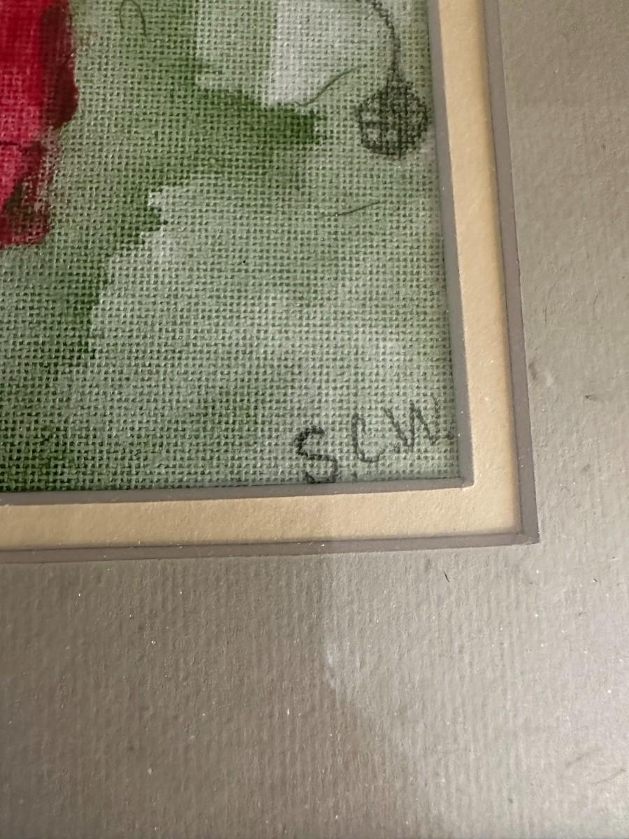 22.5 x 18.5 framed painted are. Appears to be of tennis. Double matted and framed. Initials SCW in bottom right corner