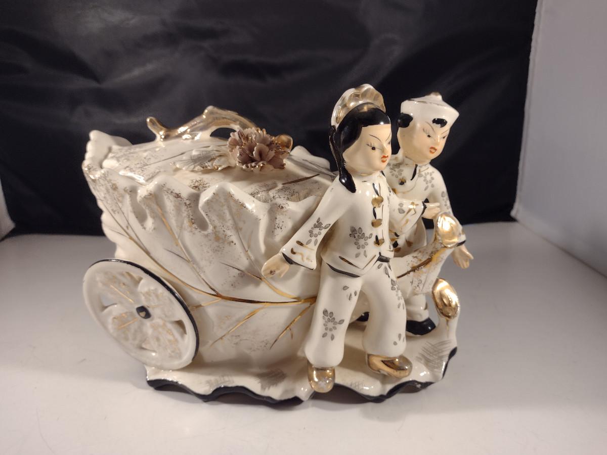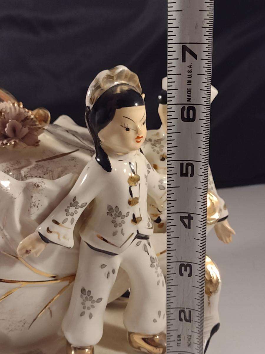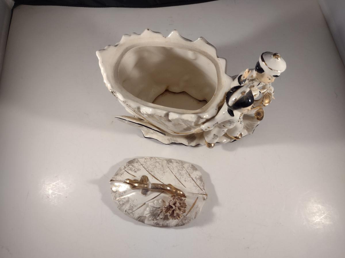 Painted Ceramic Asian Design Storage Jar with Lid. No maker's mark found. Item is in used condition and has a couple of small chips- please see all pictures.