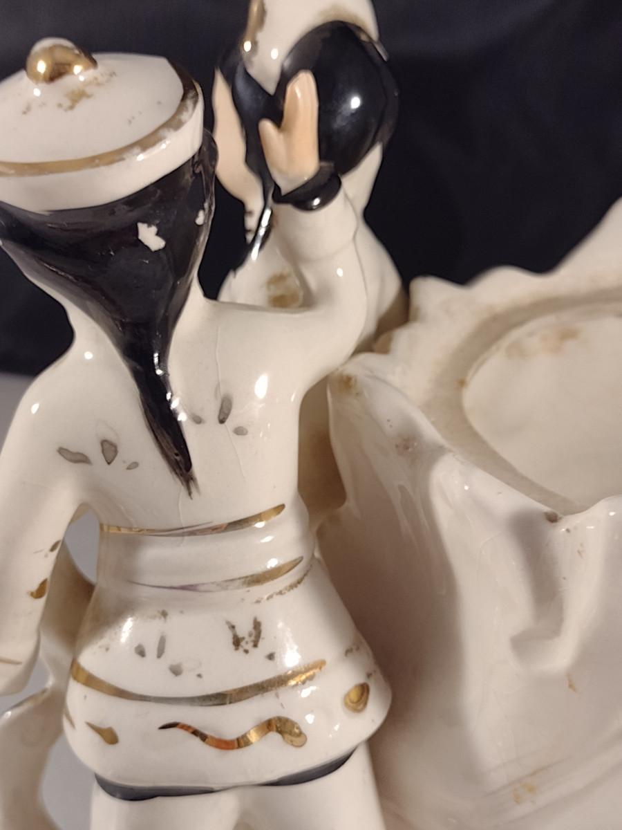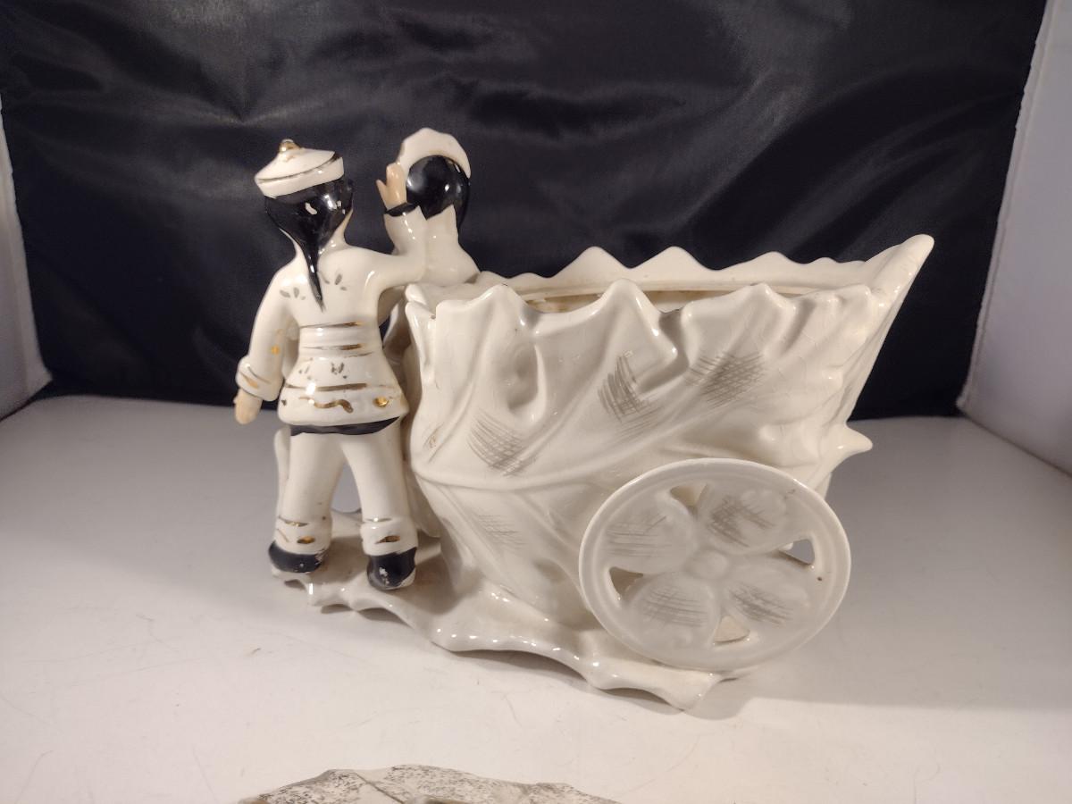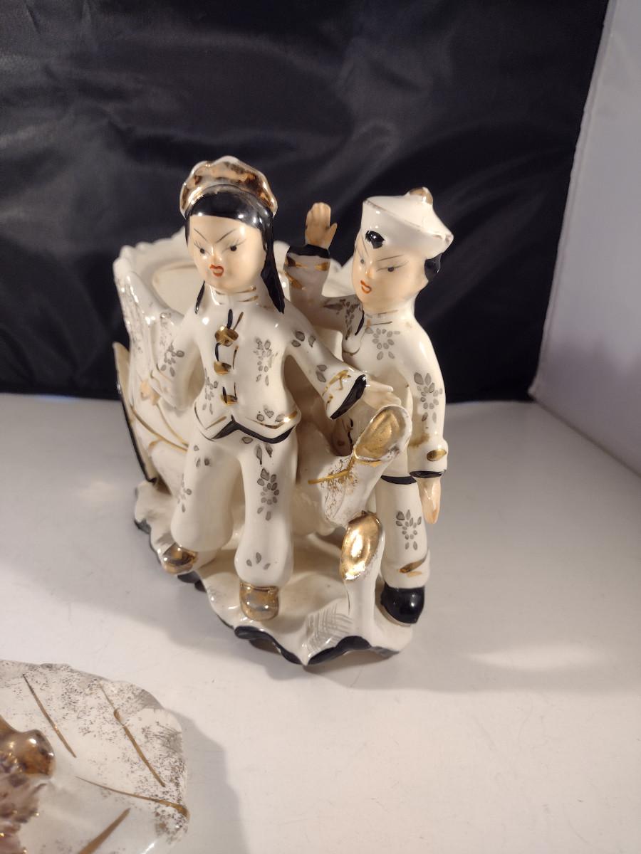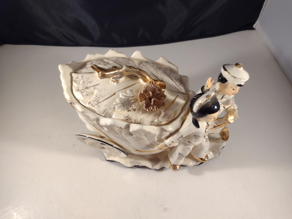Painted Ceramic Asian Design Storage Jar with Lid. No maker's mark found. Item is in used condition and has a couple of small chips- please see all pictures.