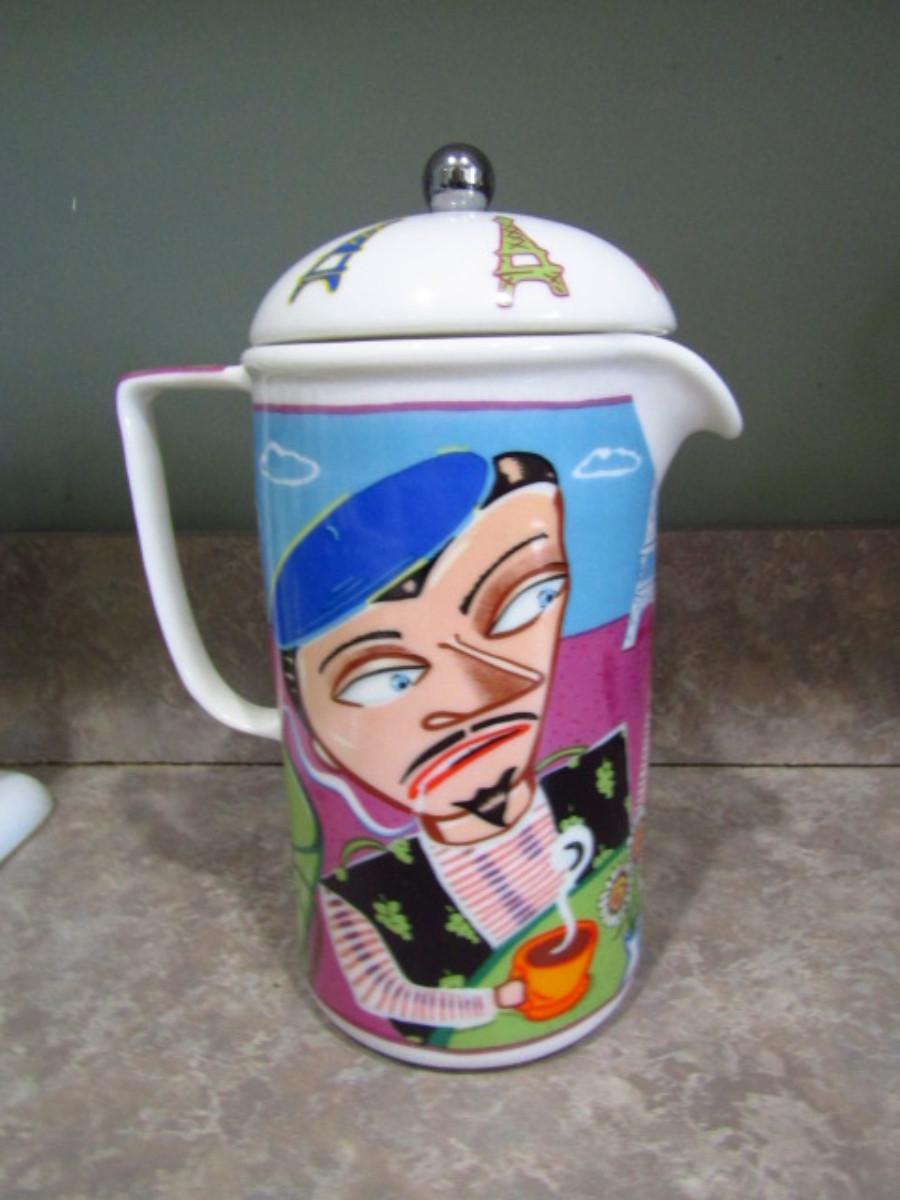Painted Ceramic Coffee Press by Chaleur- Parisian Artist Design (Apt)