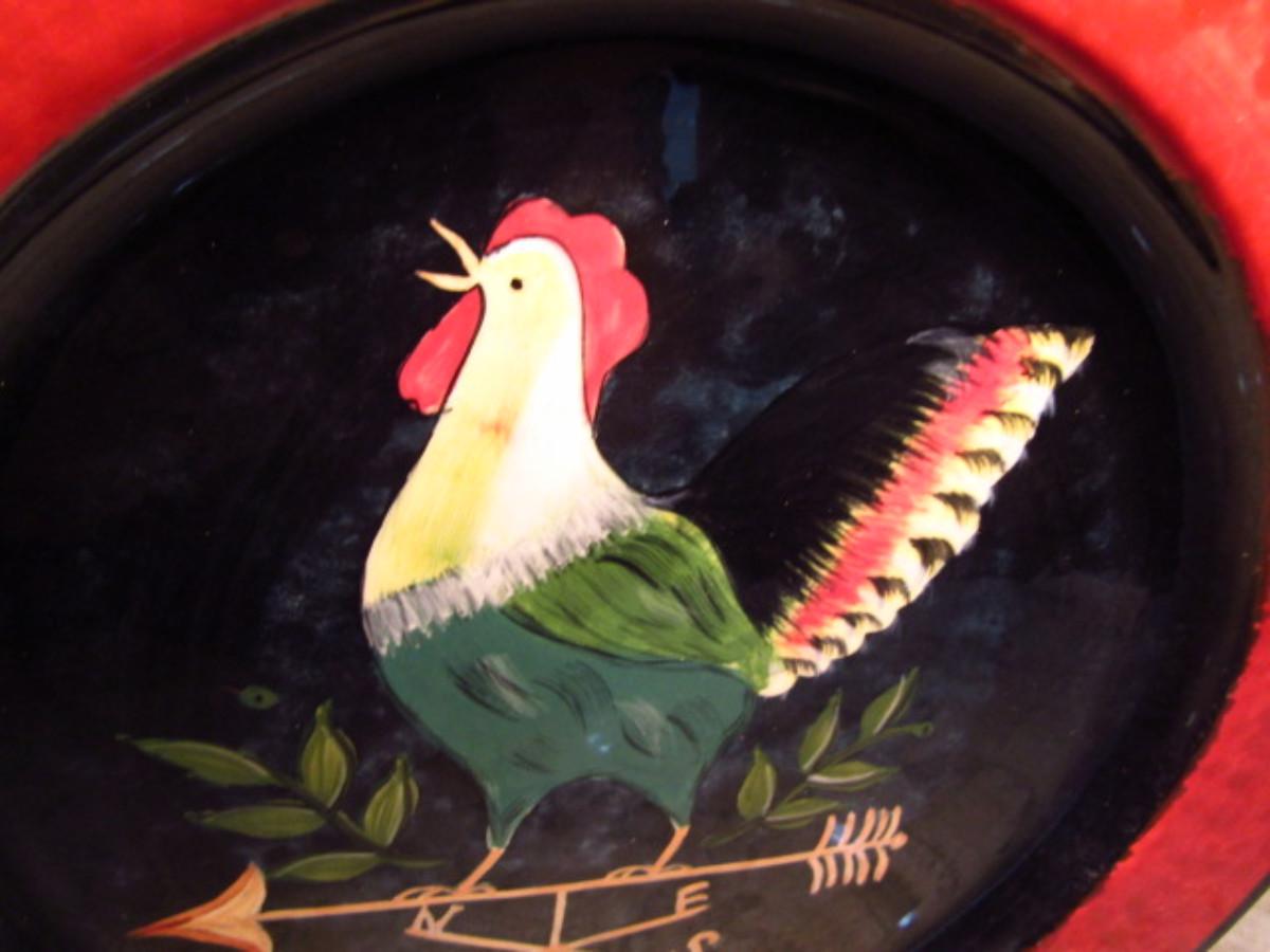 Painted Ceramic Plate- Rooster Design (K)
