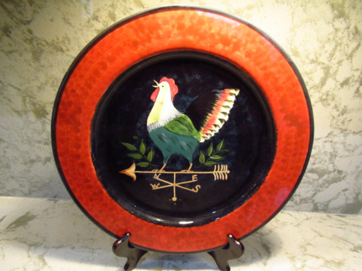 Painted Ceramic Plate- Rooster Design (Kitchen). Designed by Susan Winget. Approx 13 1/4" across. Plate holder not included.