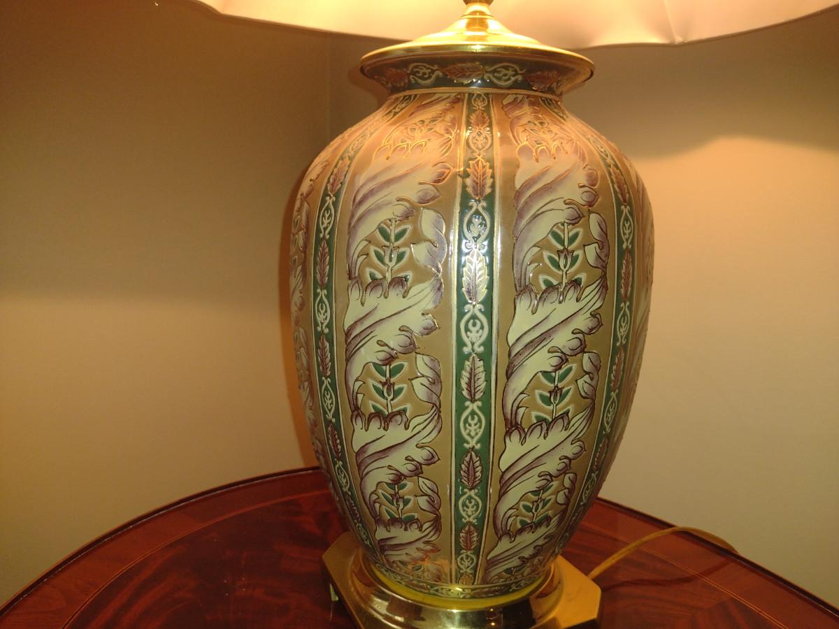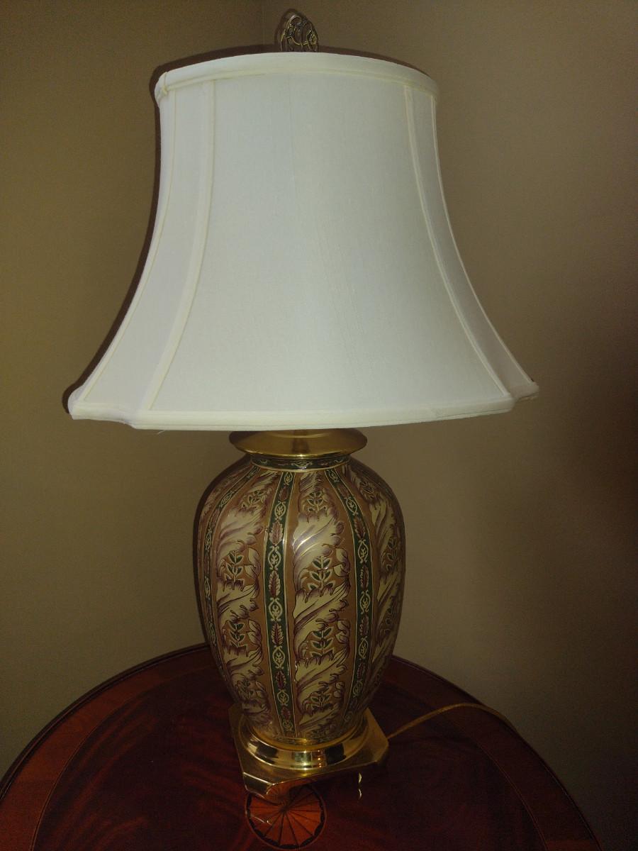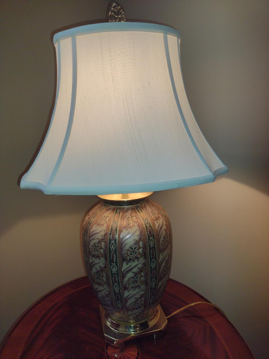 Painted Ceramic Table Top Lamp with Shade- Approx 26 1/4" Tall