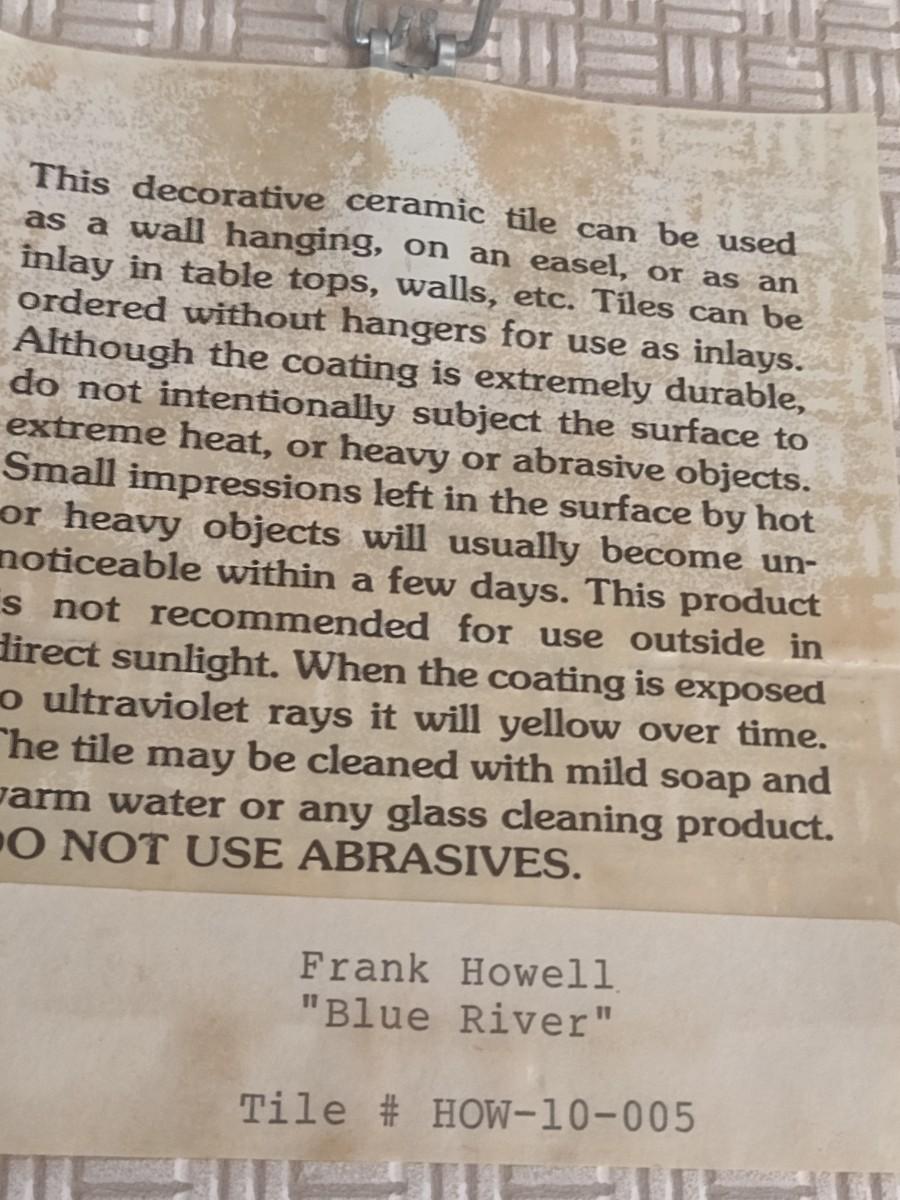 Painted Ceramic Tile "Blue River" by Frank Howell