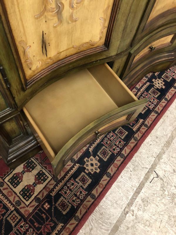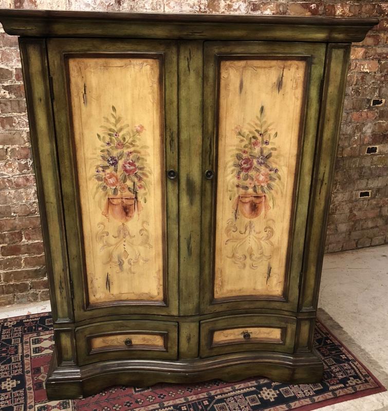 Nicely finished entertainment cabinet, painted finish. Measures 44" wide, 24' deep, 55" tall.