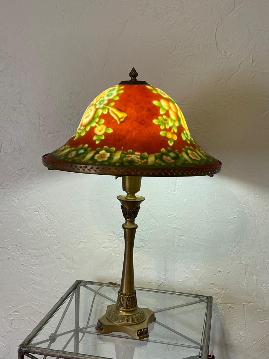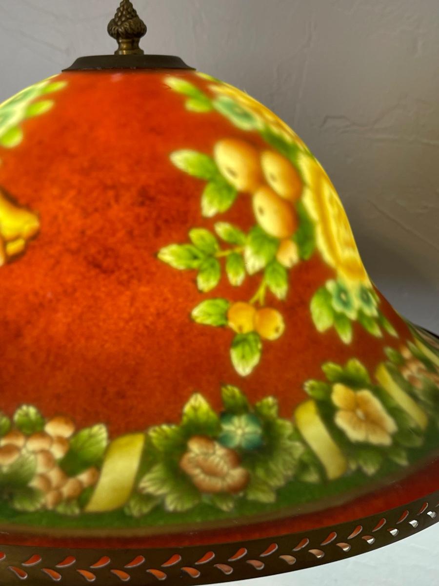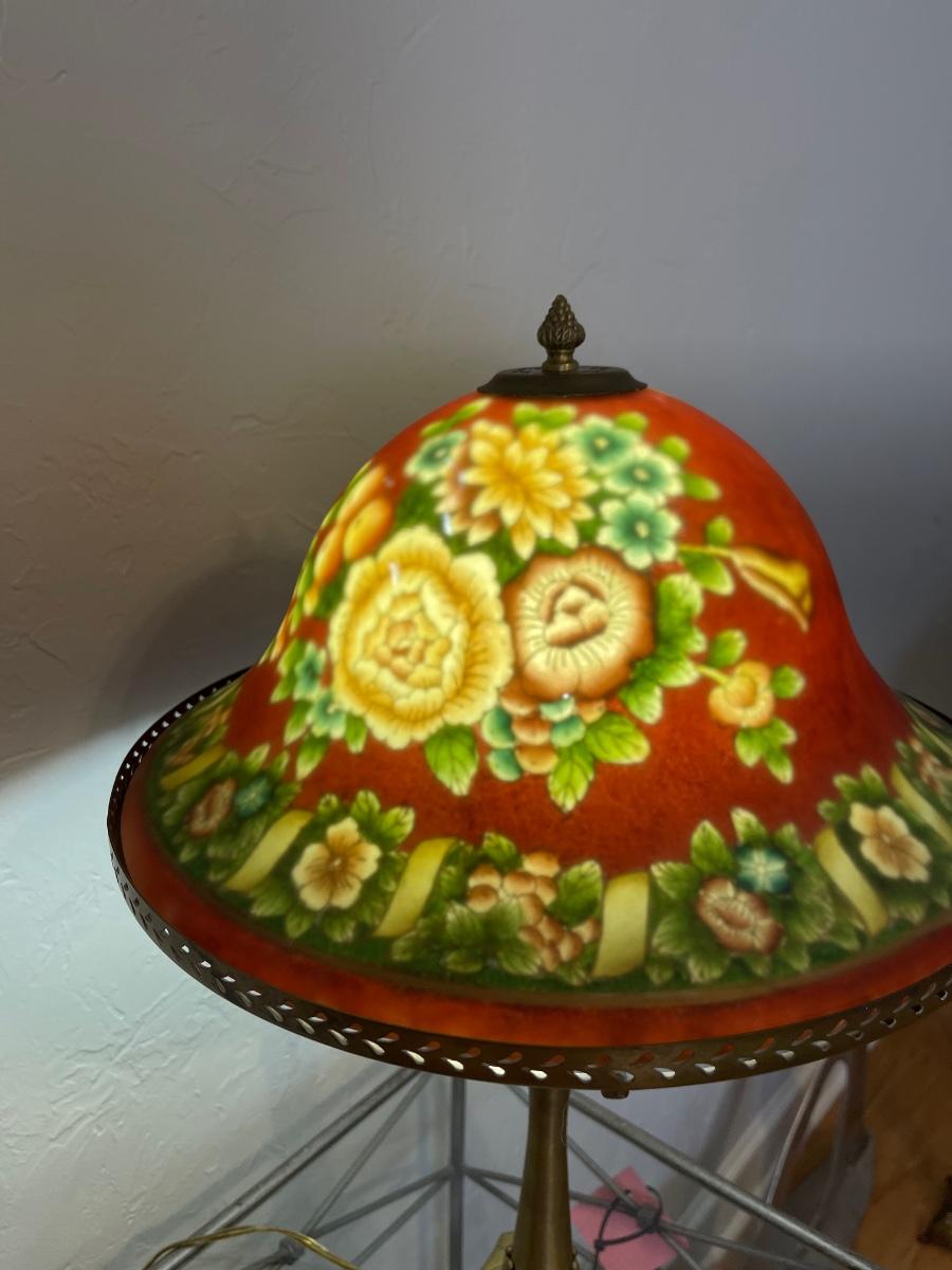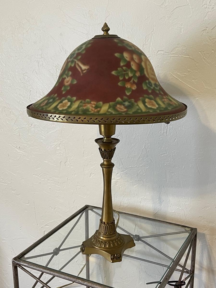 Painted Glass Dome & Brass Base Lamp ~*See Details
