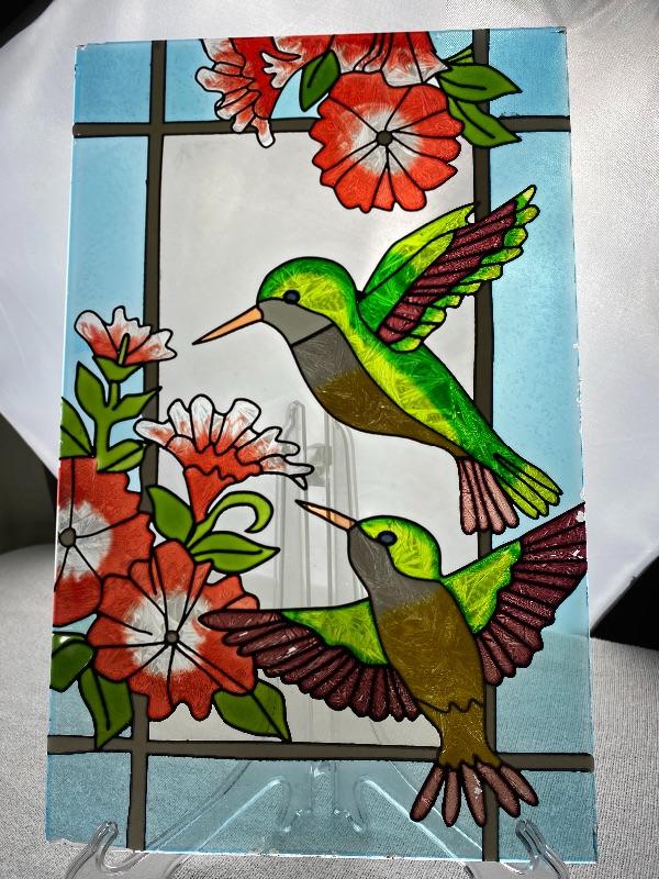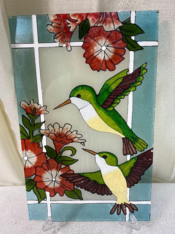 Lot # 194 -Painted Glass Plate Hummingbirds in Flight