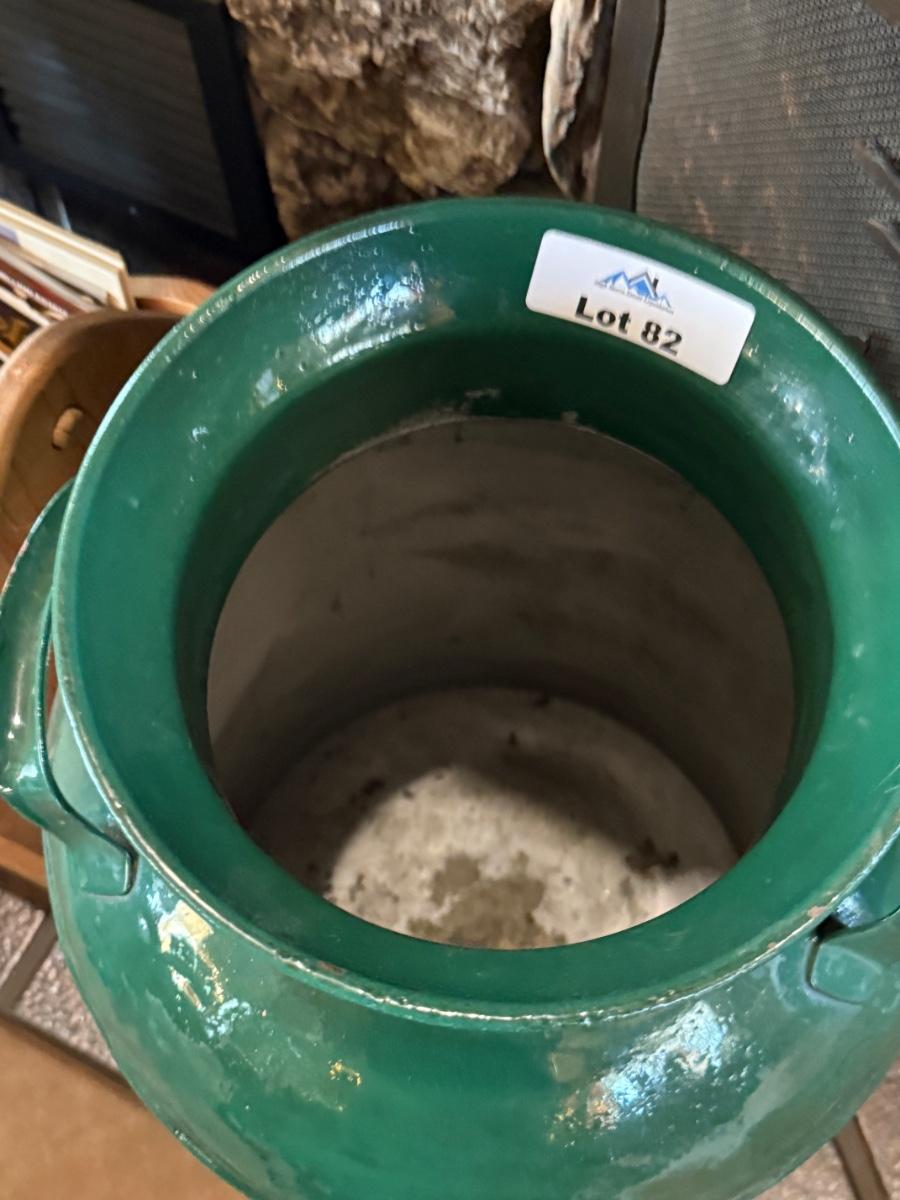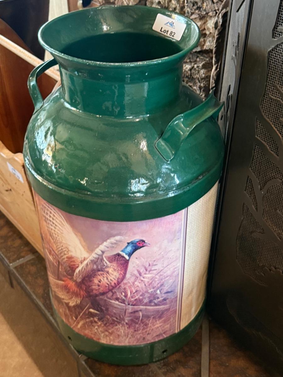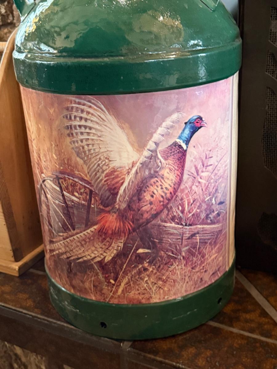 Large Green Milk Jug w/pheasant themed painting