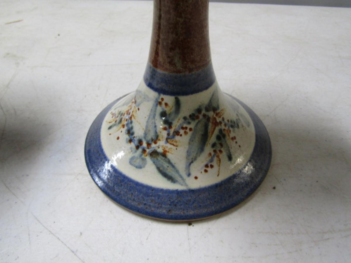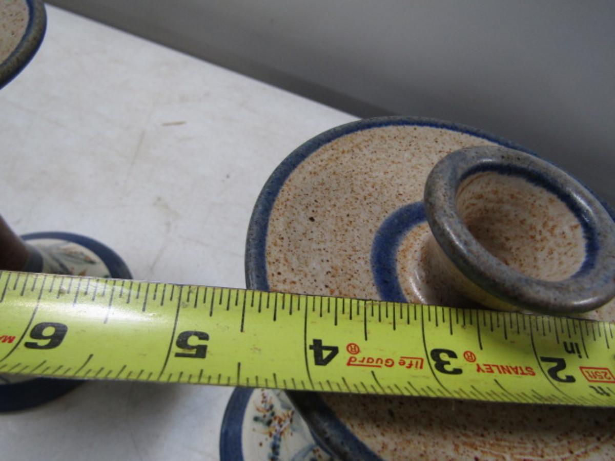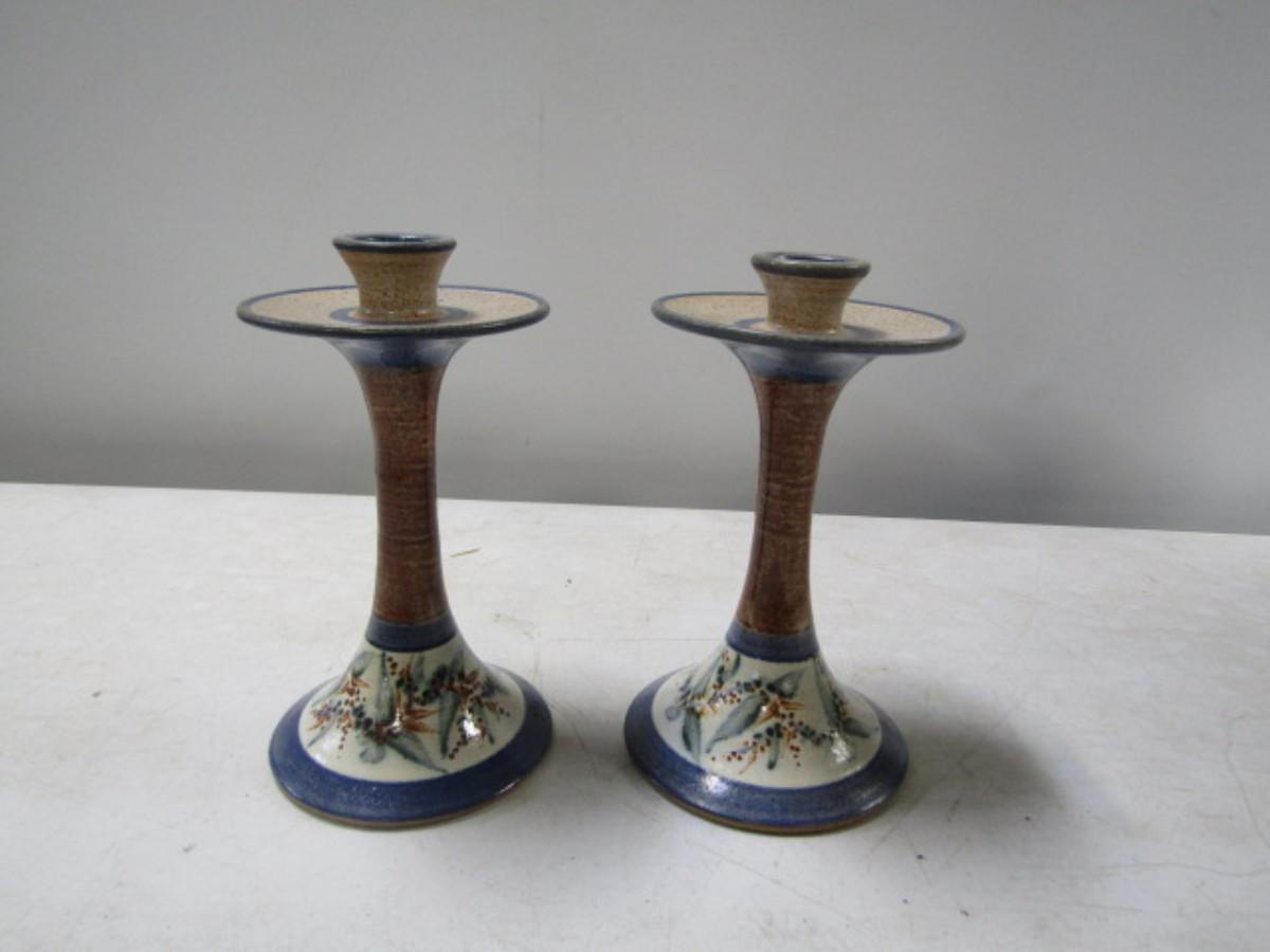 Painted Handmade Pair of Pottery Candlestick Holders made by Christopher Rumme (1993)