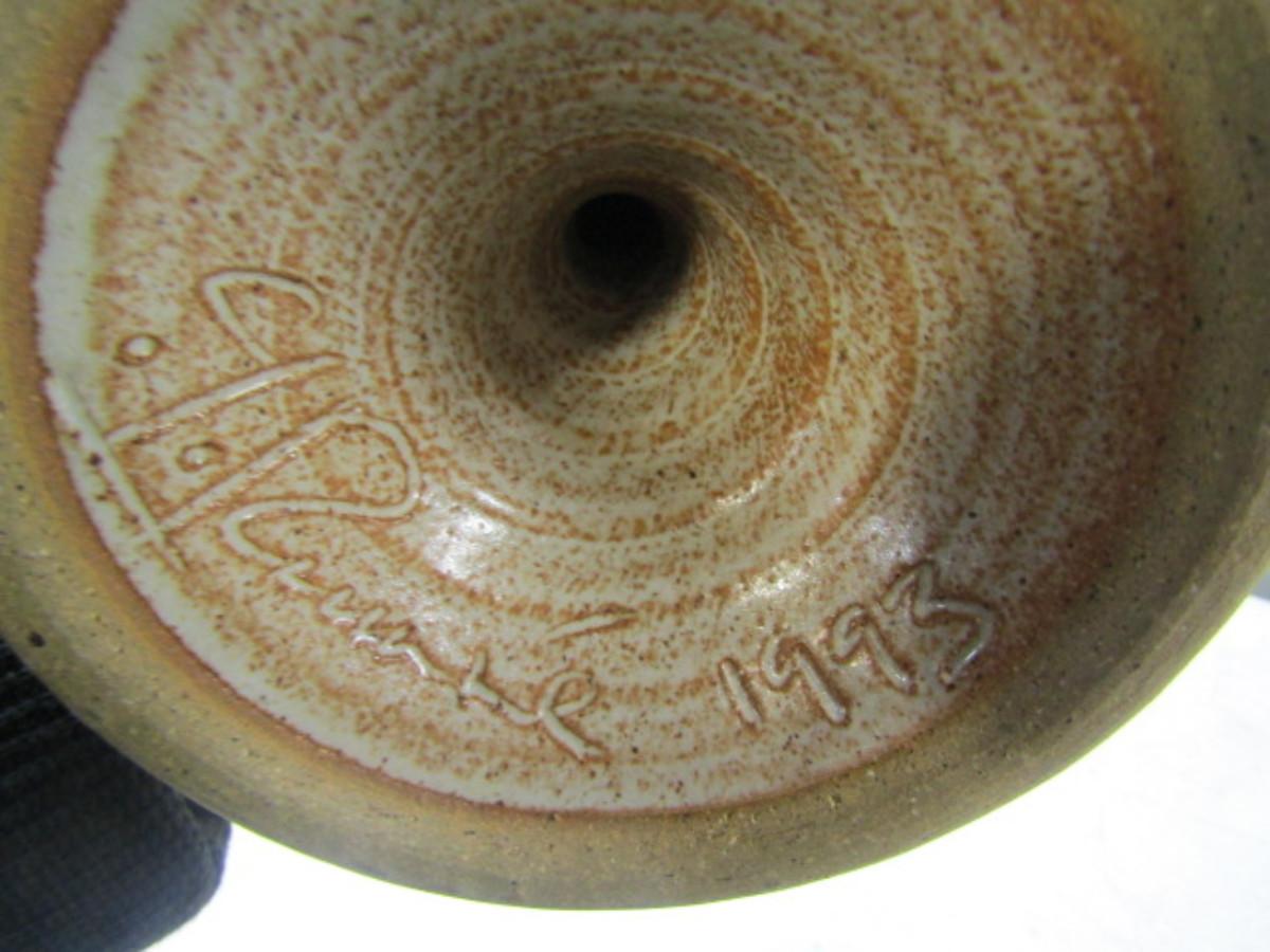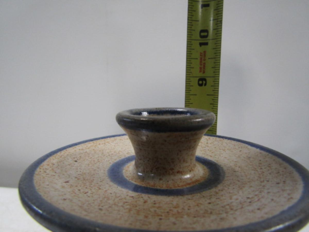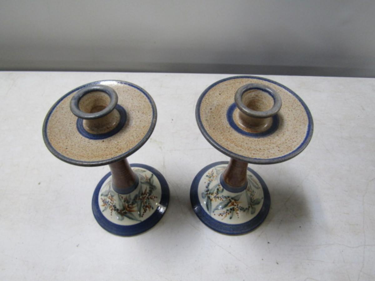 Painted Handmade Pair of Pottery Candlestick Holders made by Christopher Rumme (1993)