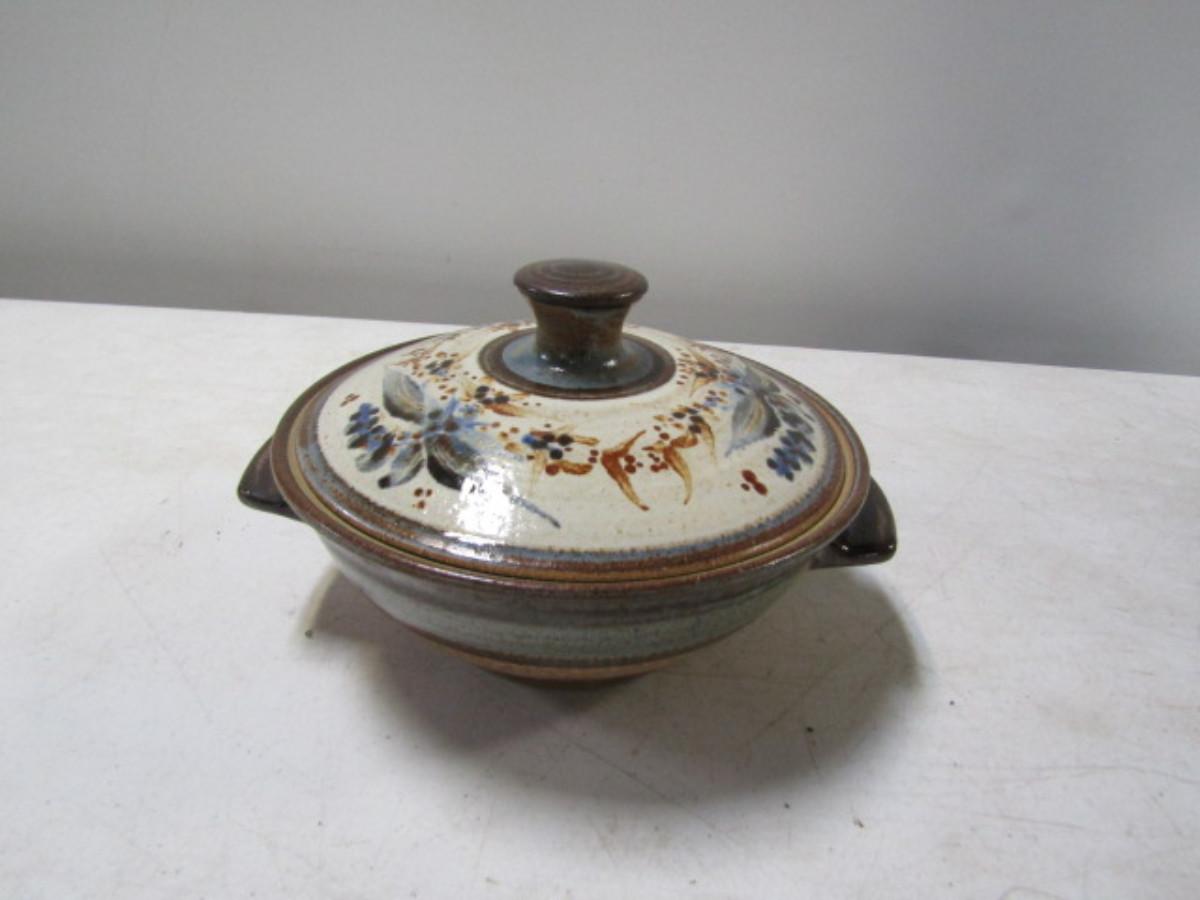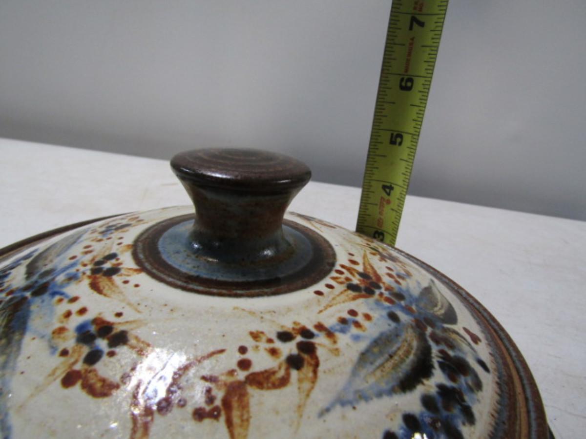 Painted Handmade Pottery Covered Bowl/Baking Dish made by Christopher Rumme (1994)
