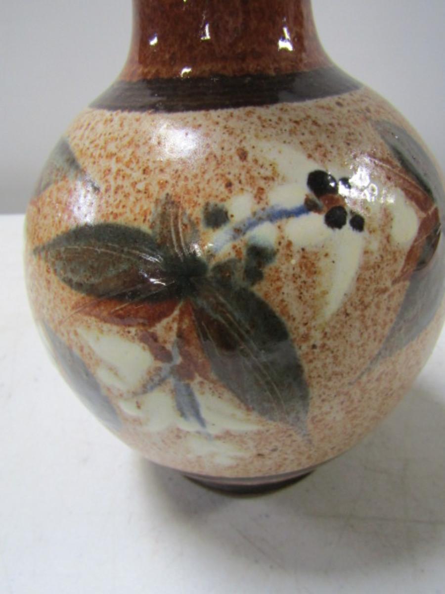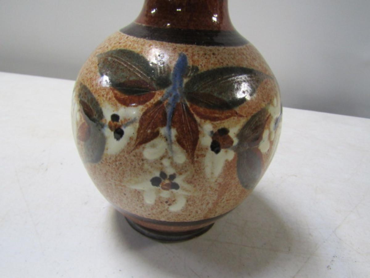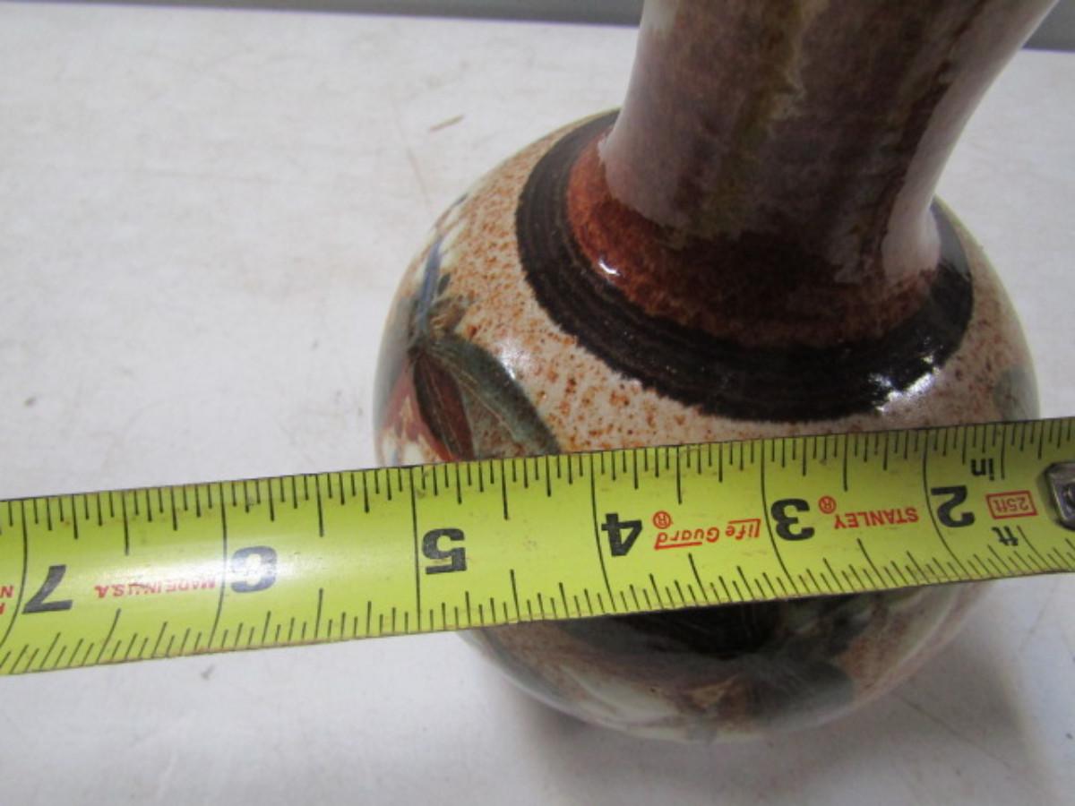 Painted Handmade Pottery Vase made by Christopher Rumme (1990)- Tan Background