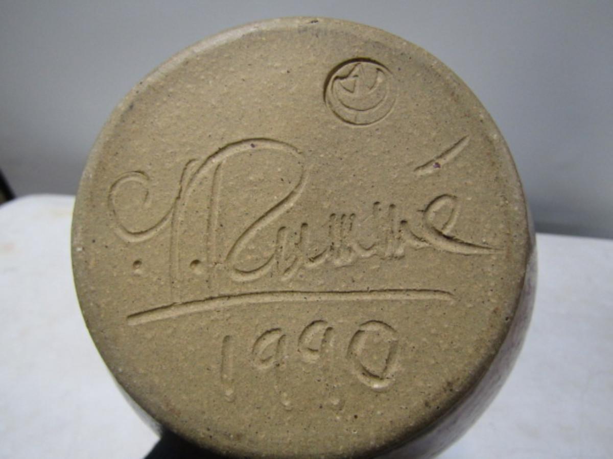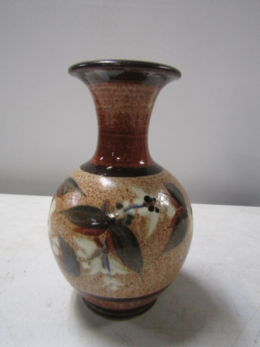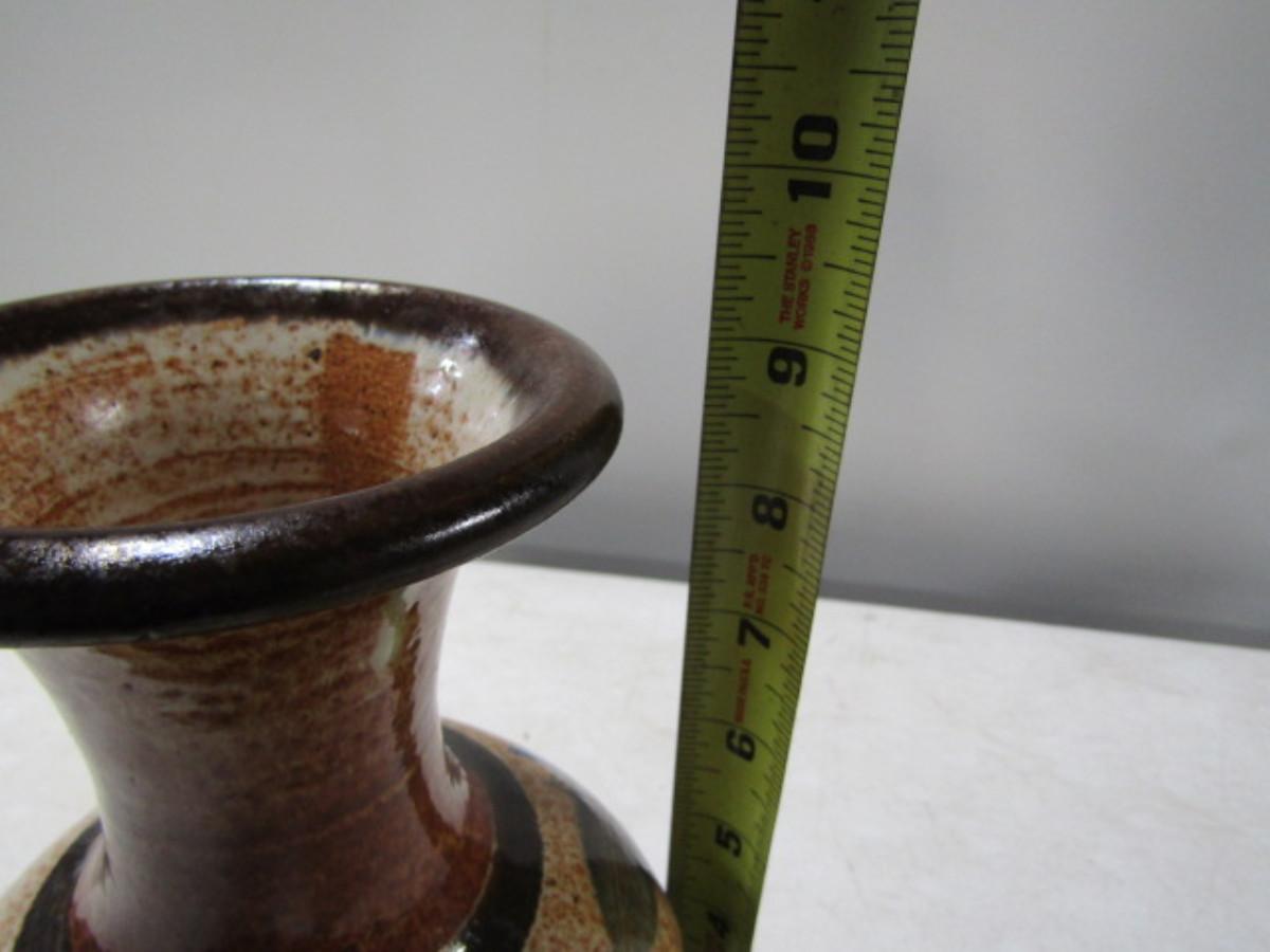 Painted Handmade Pottery Vase made by Christopher Rumme (1990)- Tan Background