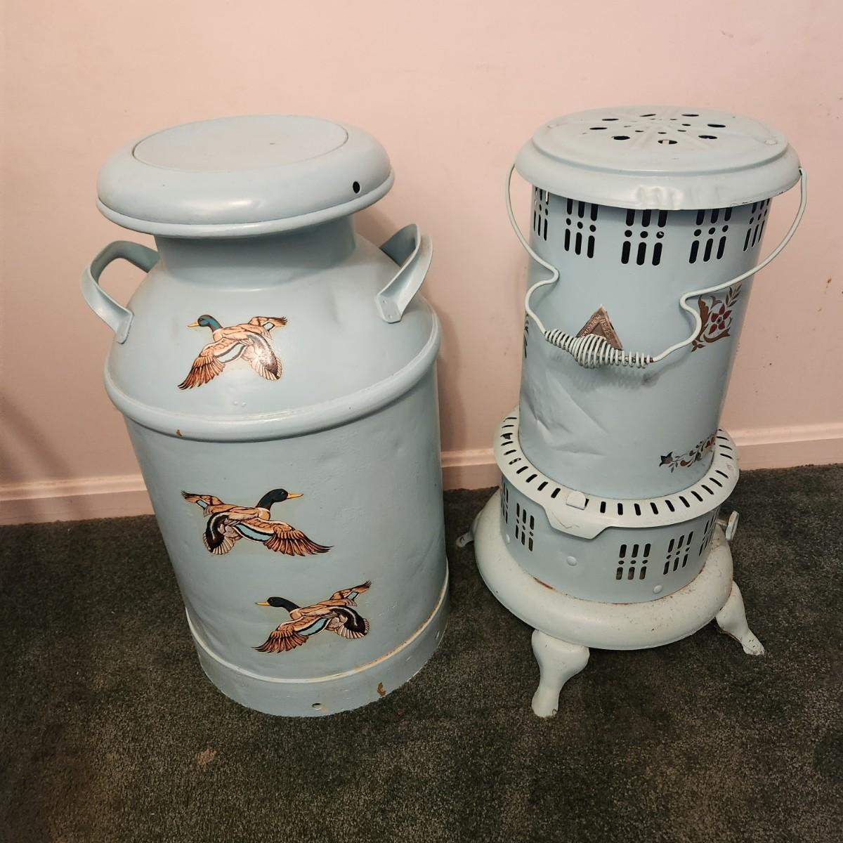 Painted Large Dairy Milk Can & Perfection 525M oil Heater