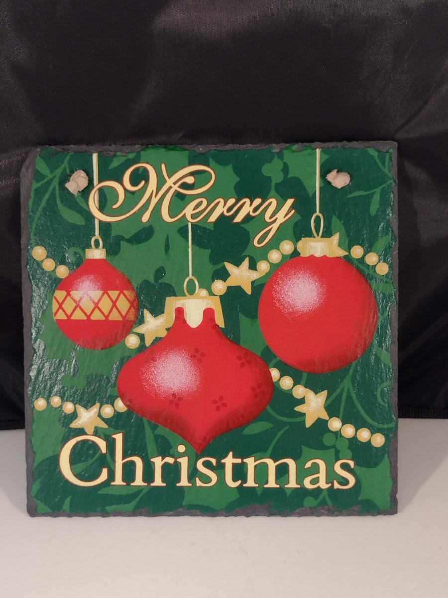 Painted Merry Christmas Sign on Slate- Approx 8" Square
