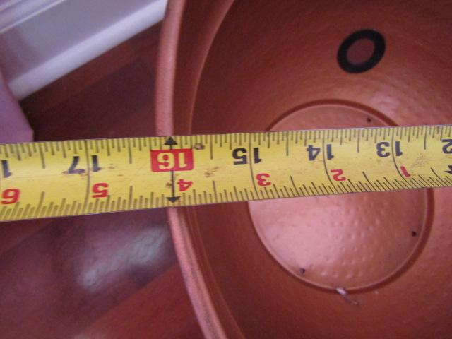 Painted Metal Bowl for Garden Hose Storage. 16" across, 12" high.