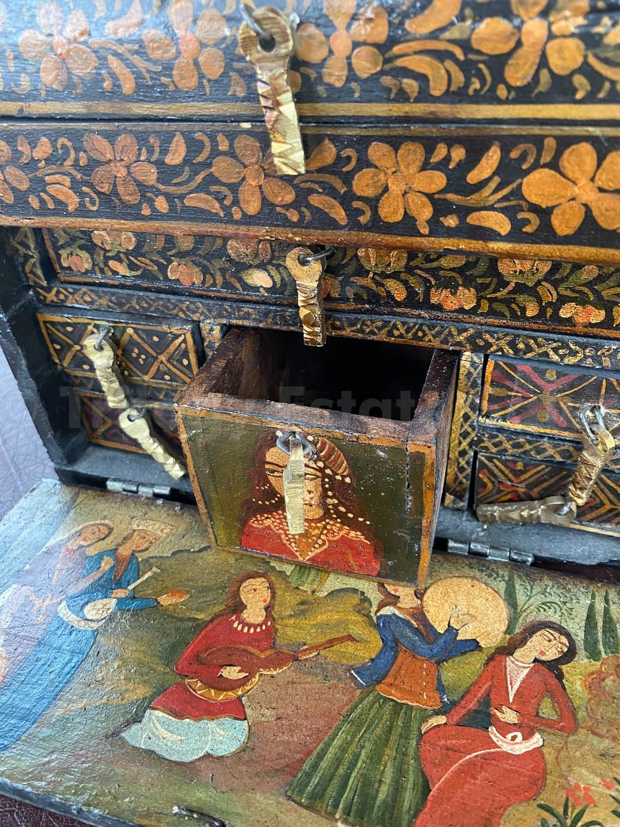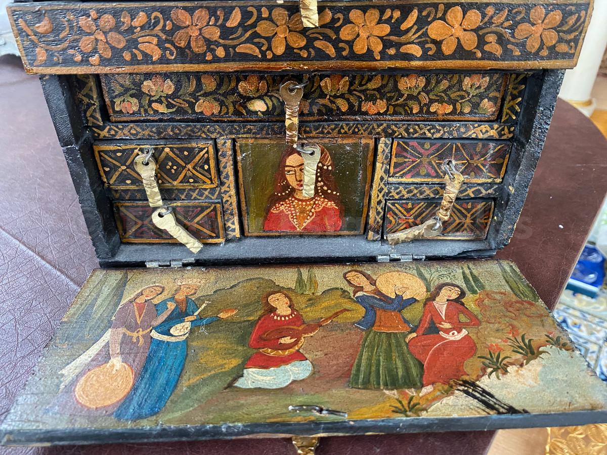 painted Persian box; wood, several drawers