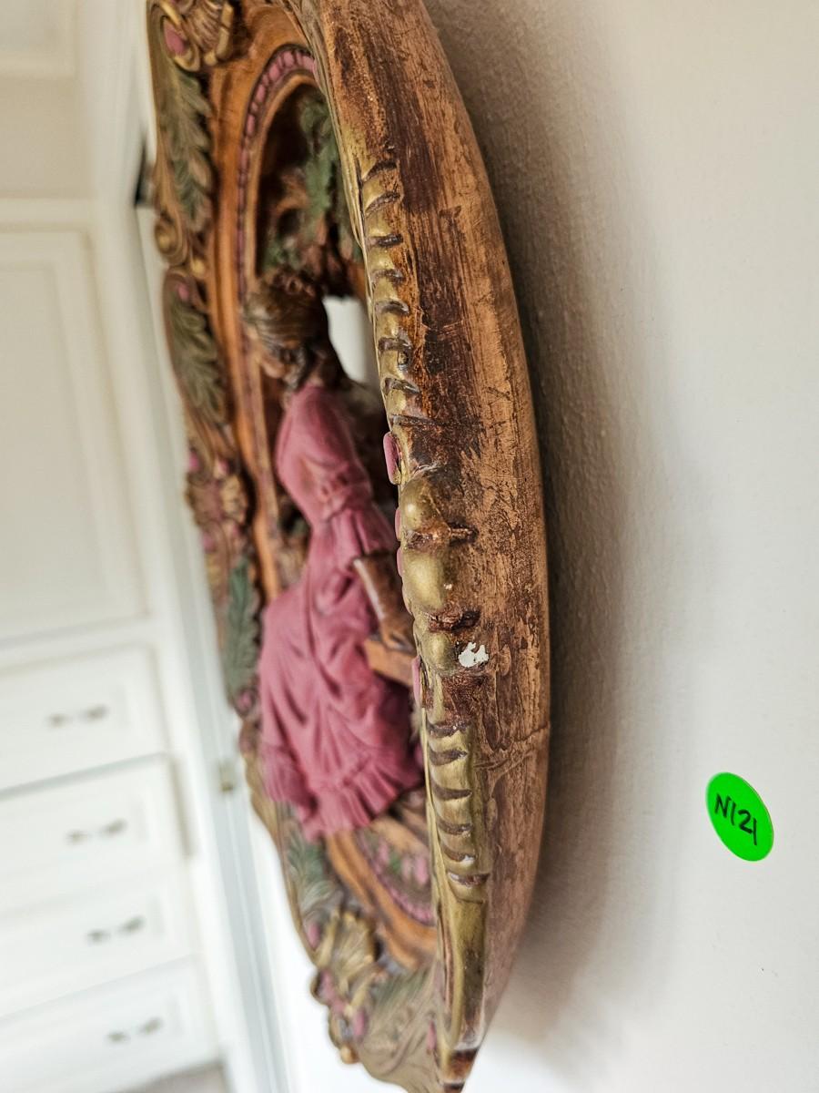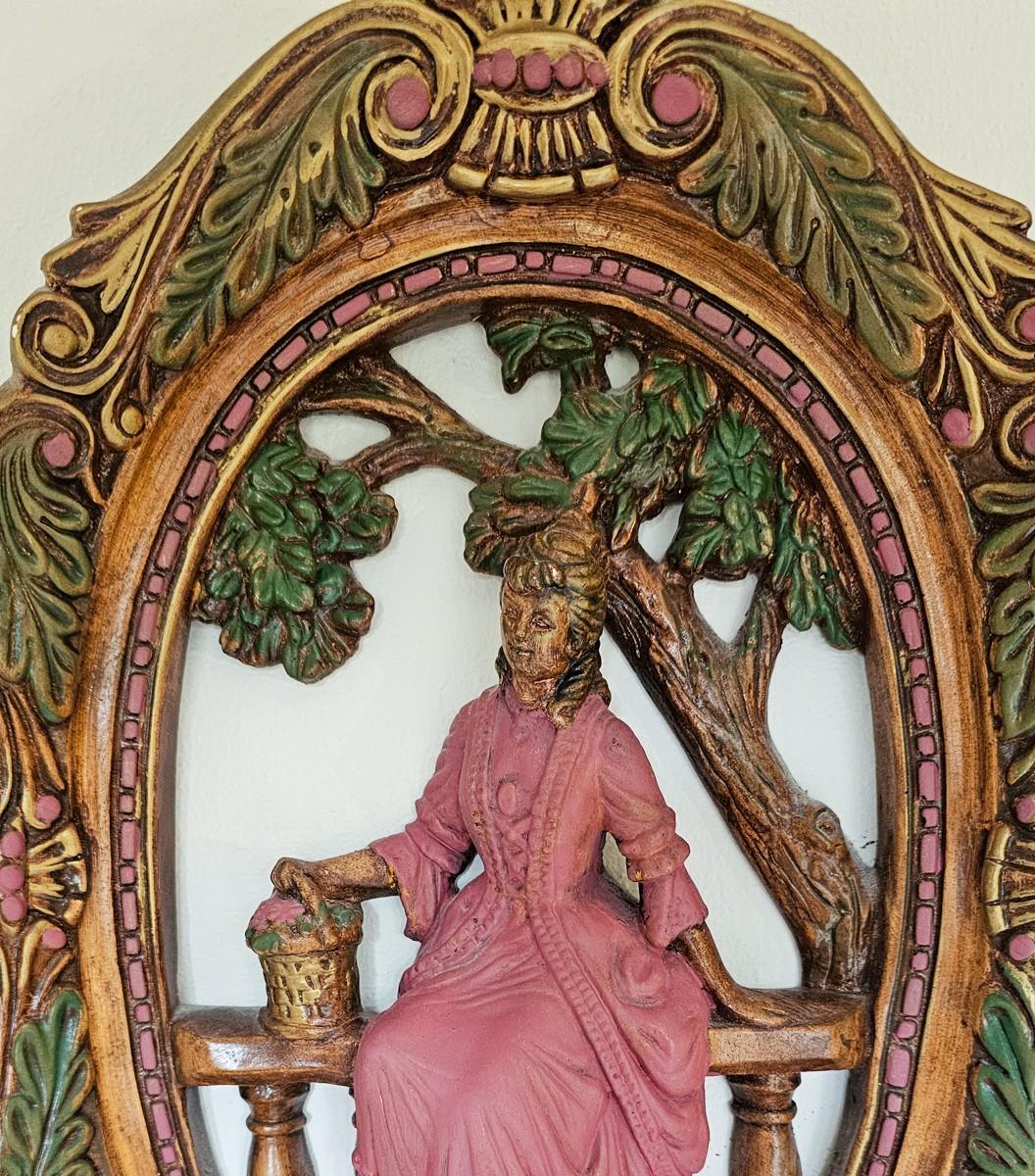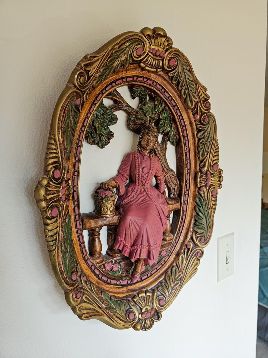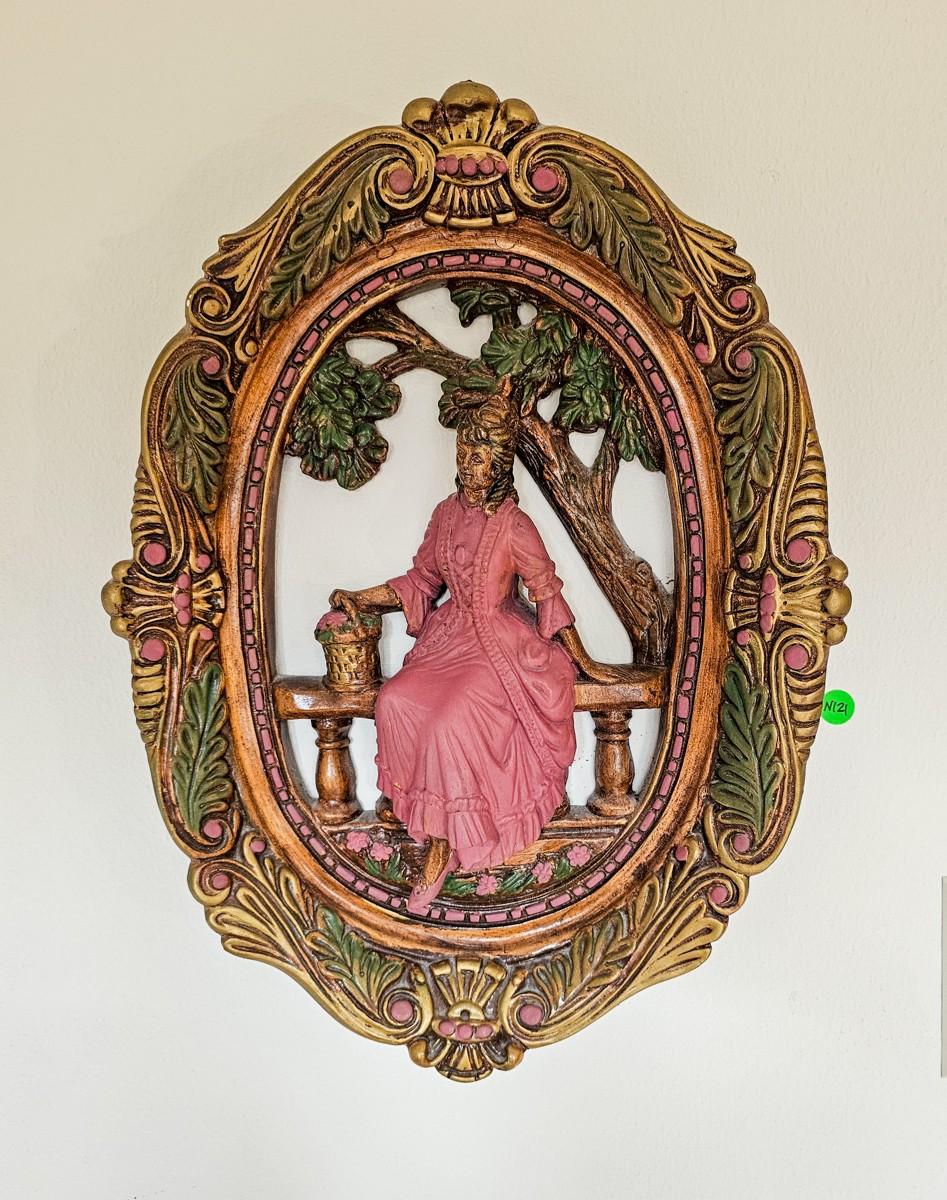 Vintage molded plaster, hand painted. Lady in pink
