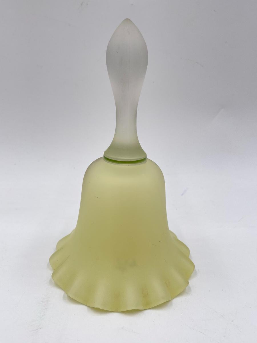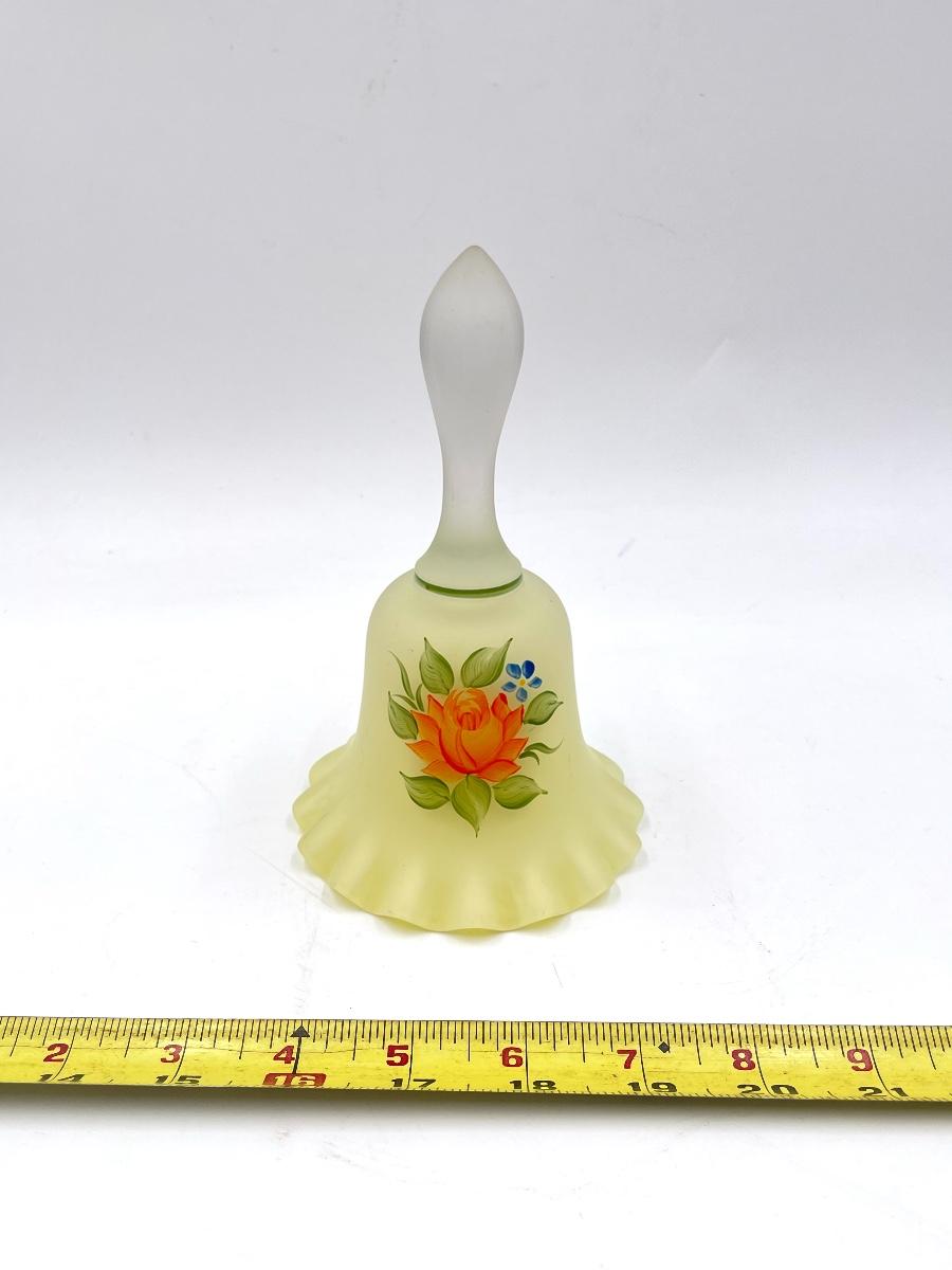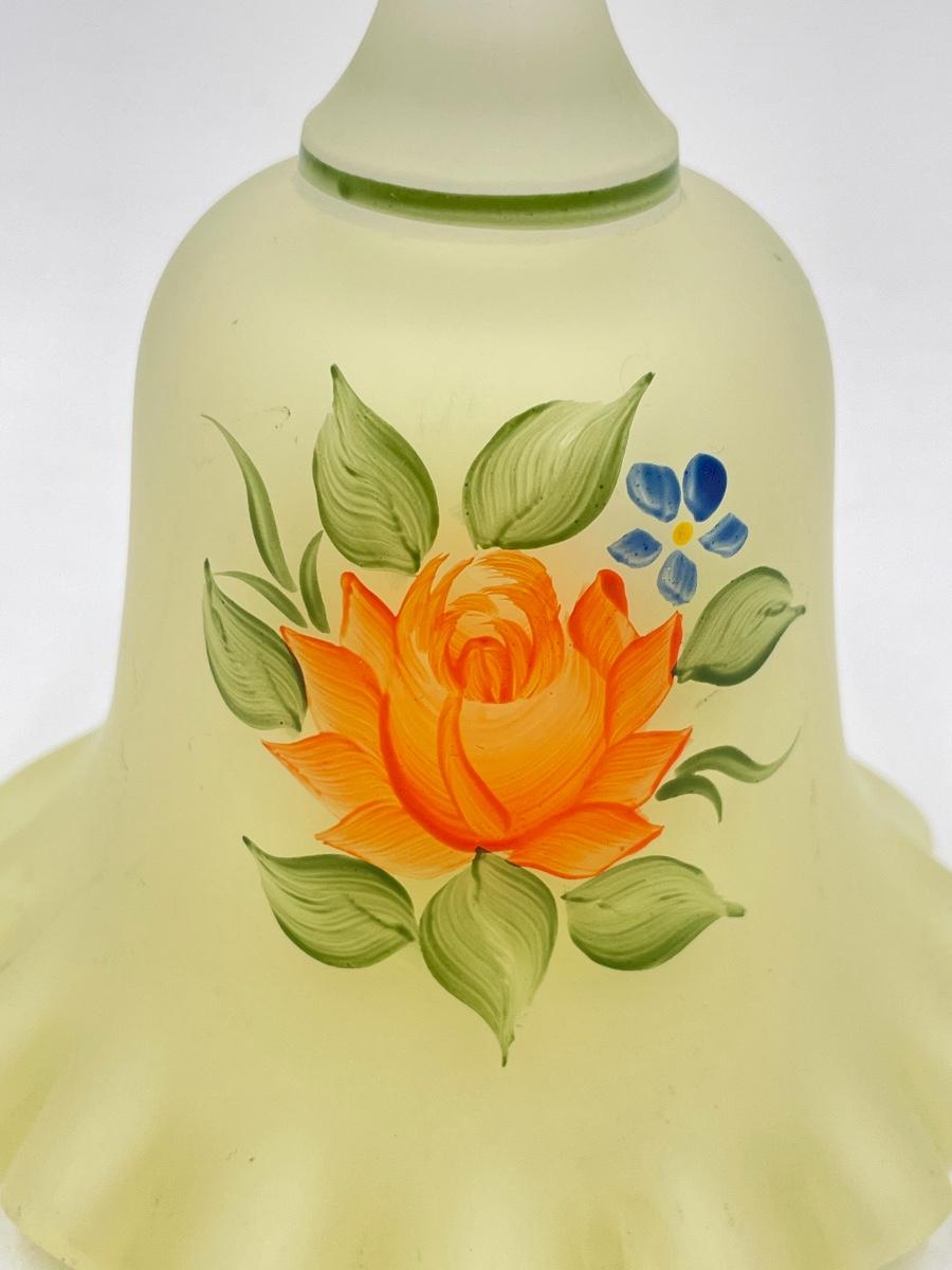 FENTON PAINTED ROSE ON YELLOW GLASS BELL “B WEISS 1982”
