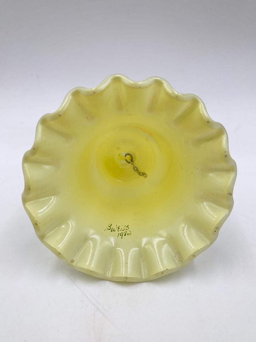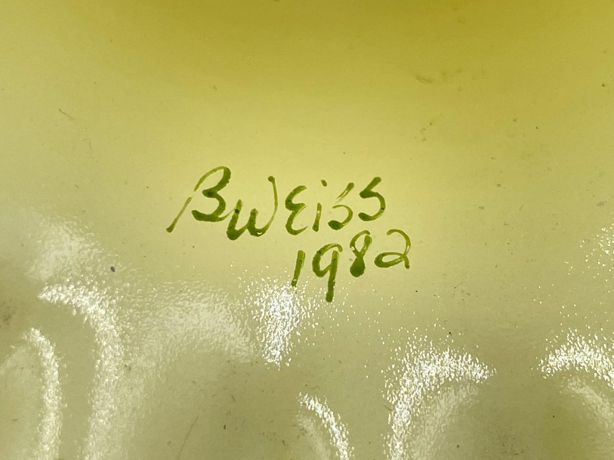 This bell is missing the clapper but in otherwise good condition, no chips or cracks found. Signed inside with “B WEISS 1982”