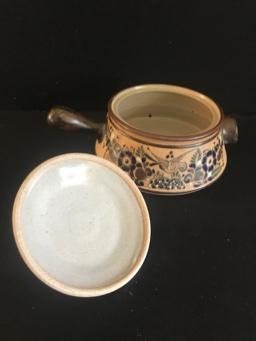 Slight chip to inside of rim but does not come in contact with food, Enamled inside