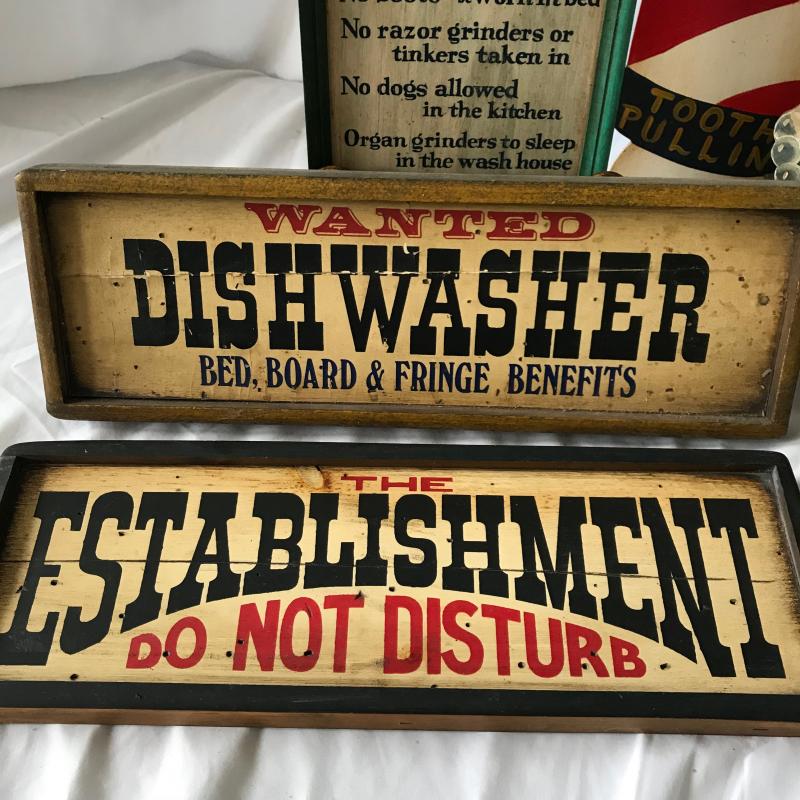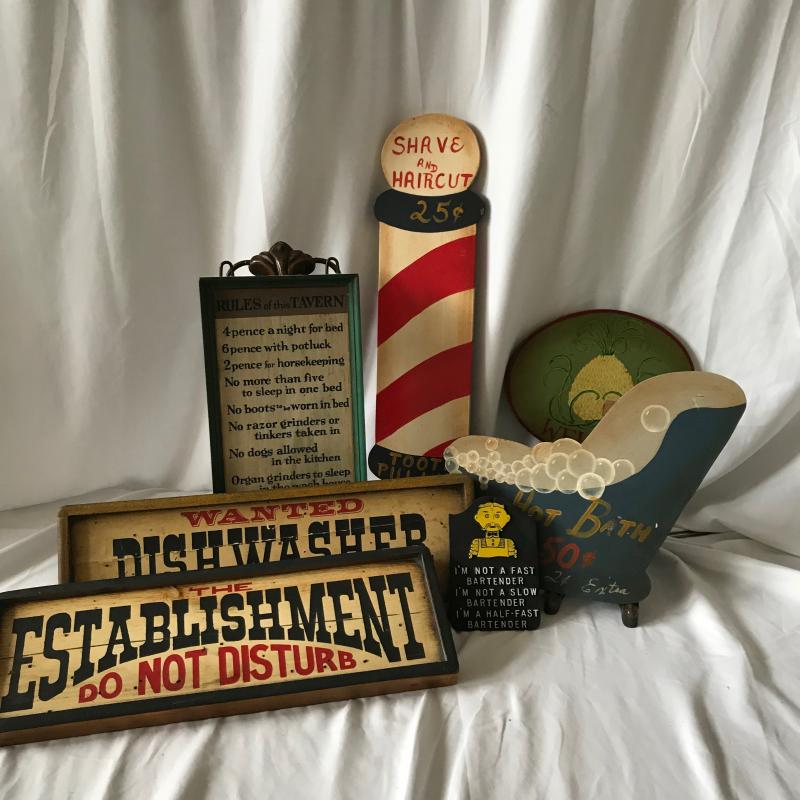 Lot includes 7 unique and clever signs. Tooth pulling sign is approx. 22.5” x 5”. No shipping available. Local pickup only in Hendersonville, NC.