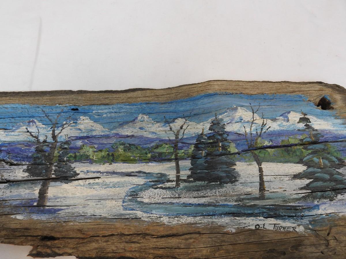 Painted Winter Scene On Piece Of Wood, Artist O. L. Turner