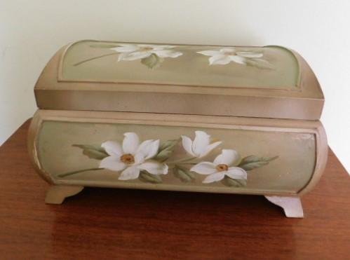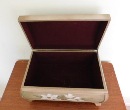 Painted Wood Felt Lined Trinket Box 14"x9"x8"