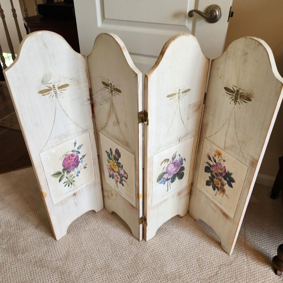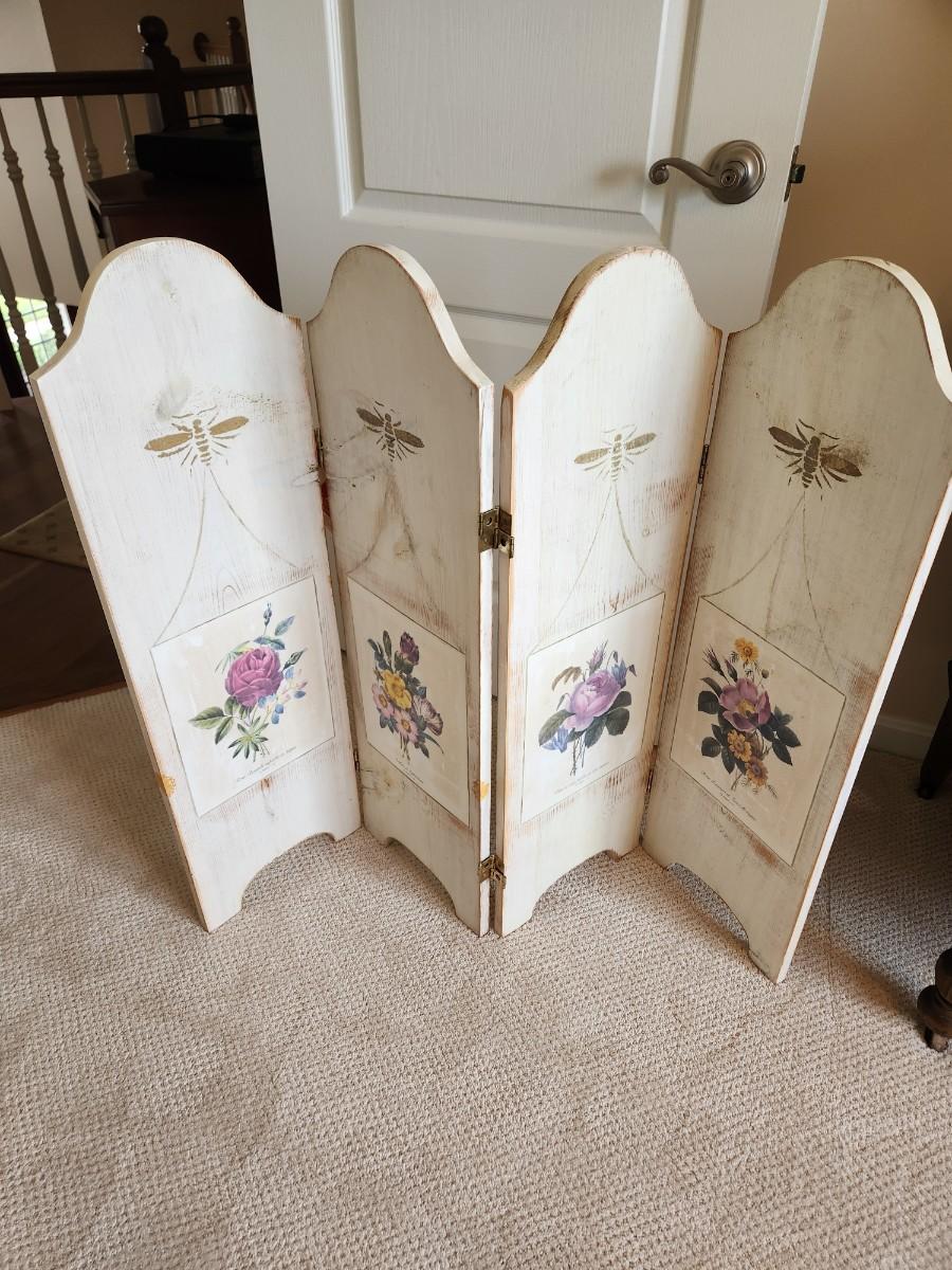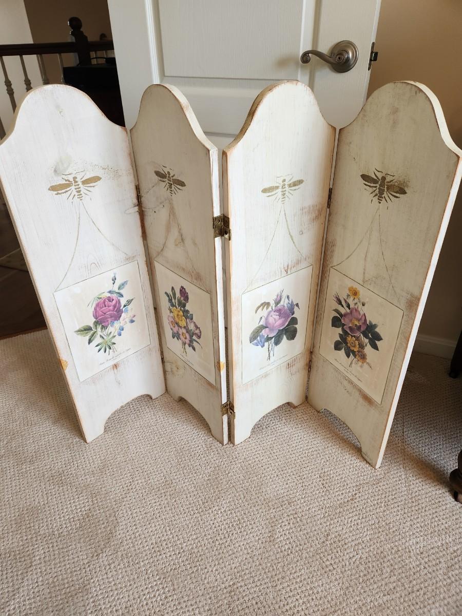 Painted Wood Folding Screen 46" X 3ft H x