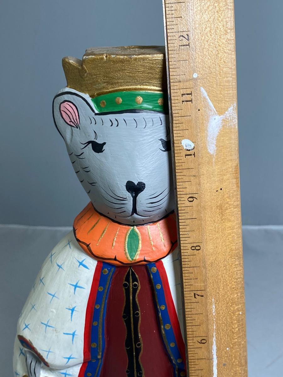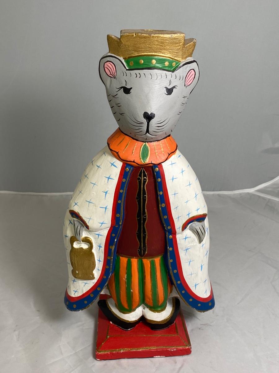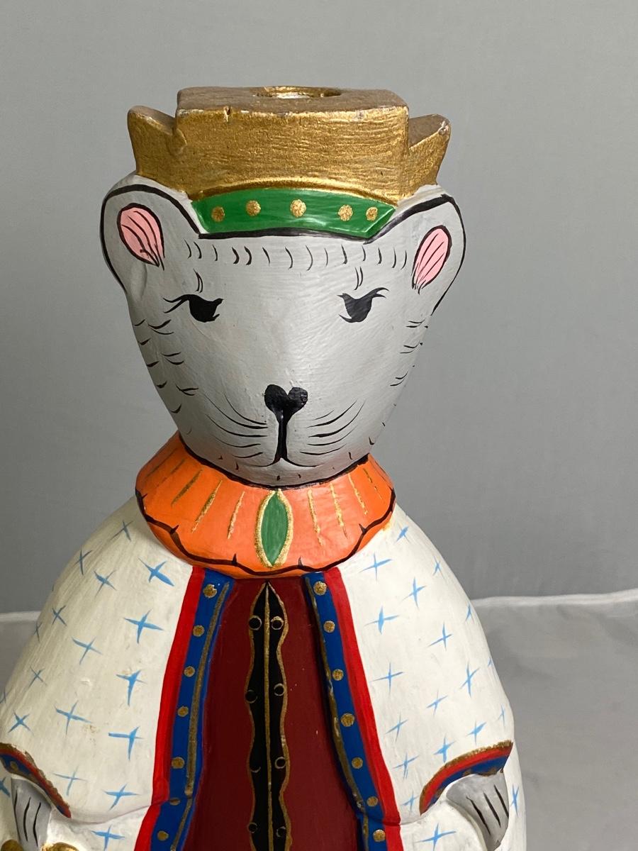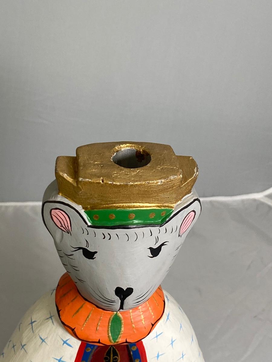 Painted Wood Folk Art Rat King Candle Holder Holiday Seasonal Decor