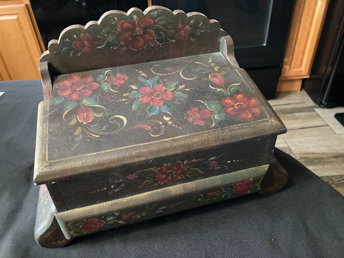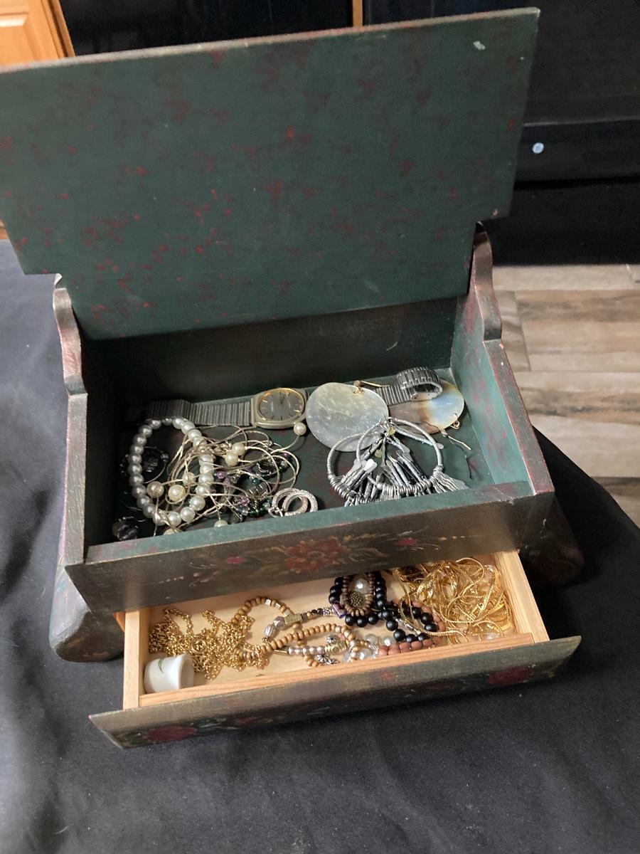 Painted Wood Jewelry Box with Contents