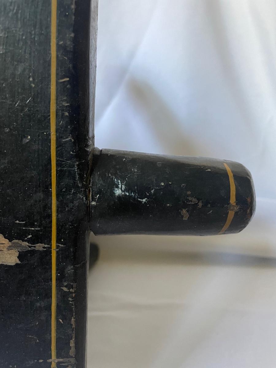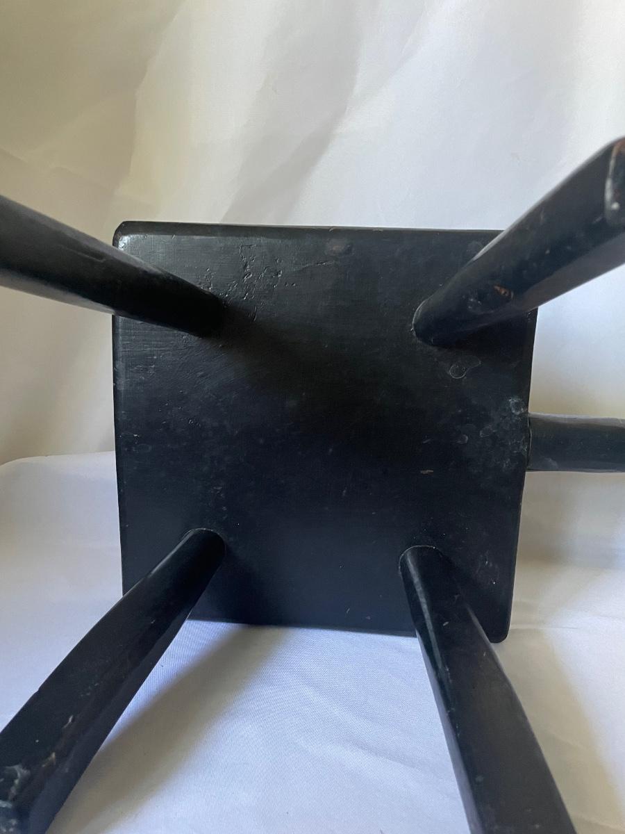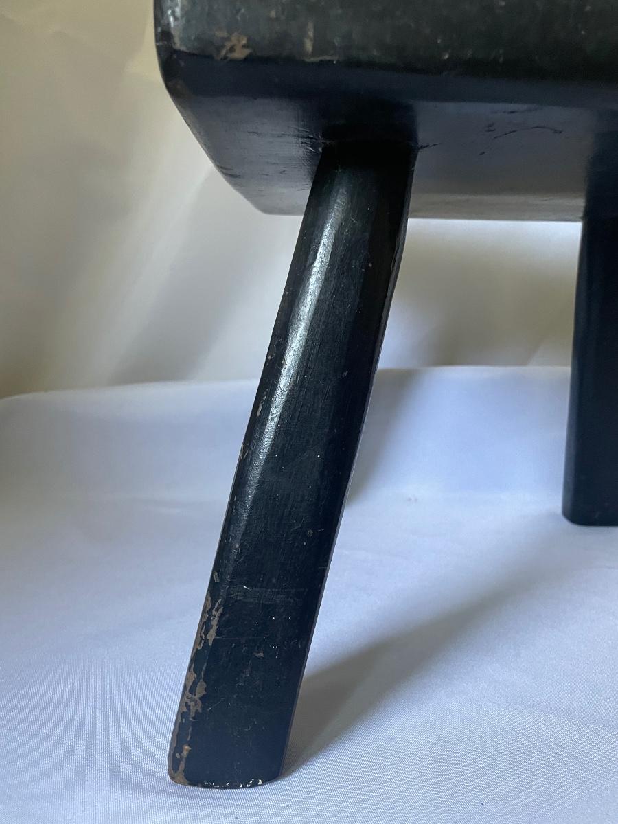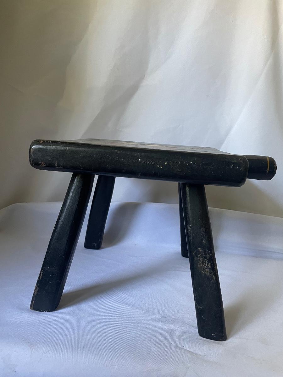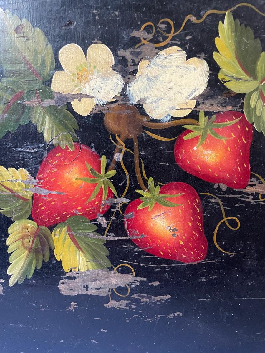 This adorable stool with handle is wood painted black with a strawberry motif in the center, it has minor scuffs in the paint that give it even more vintage appeal, it measures 11” x 11” x 11”. Also included is a