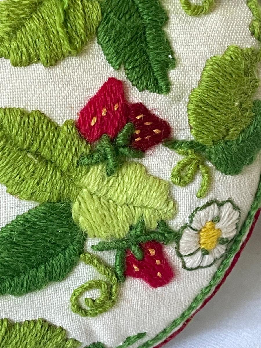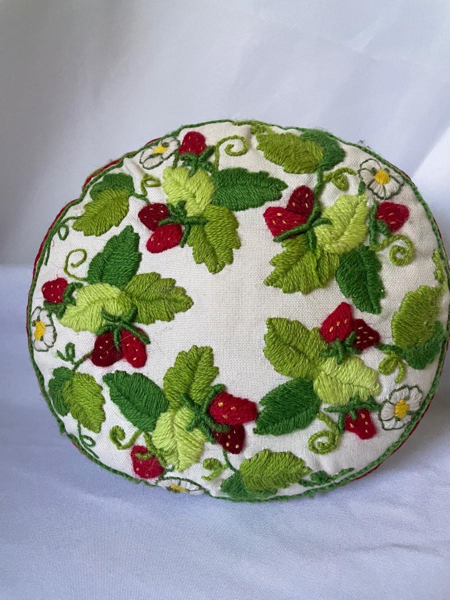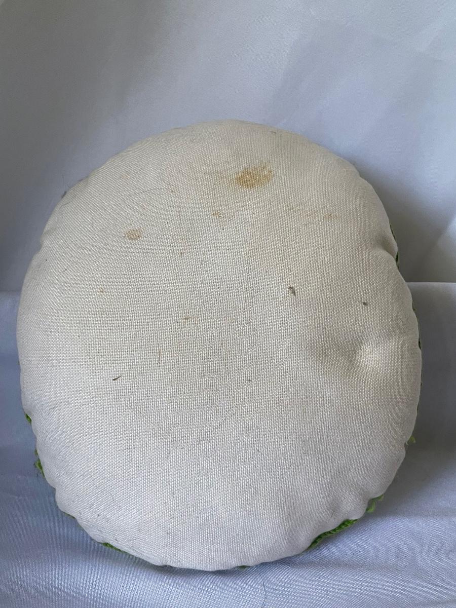10” diameter hand embroidered pillow (note the stains shown in image).
