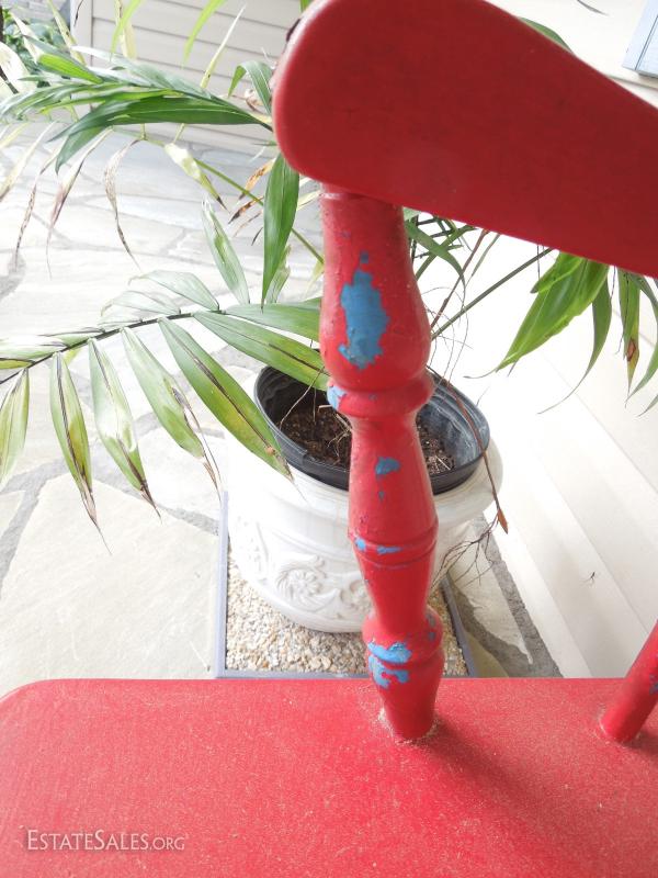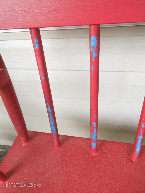 Two layers of paint lends natural distressed look where paint is peeling. Wood is solid and no rotten places. Has been under cover on porch. No manufacturer's mark. 42" wide.