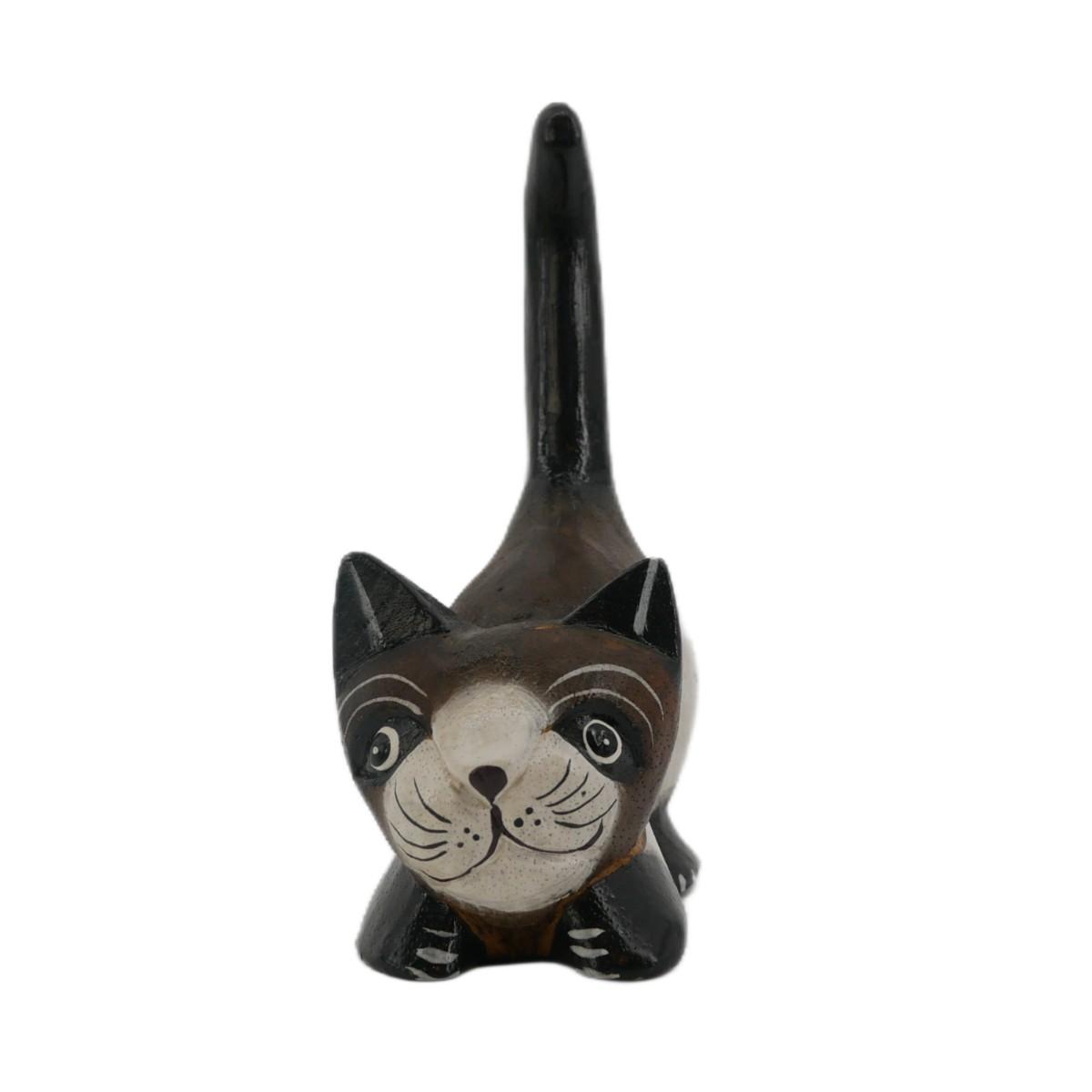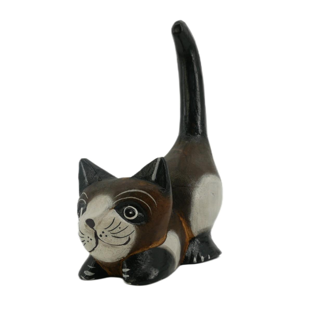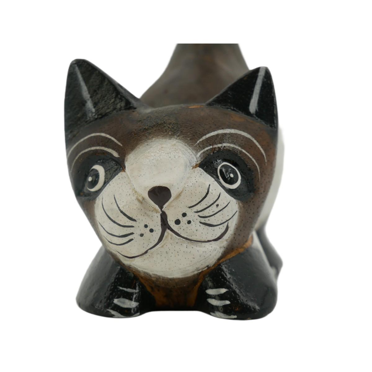 Super adorable carved wooden painted cat piece. Measures 5.5" x 3" x 7.5", weighs 3.5 oz. No issues found.