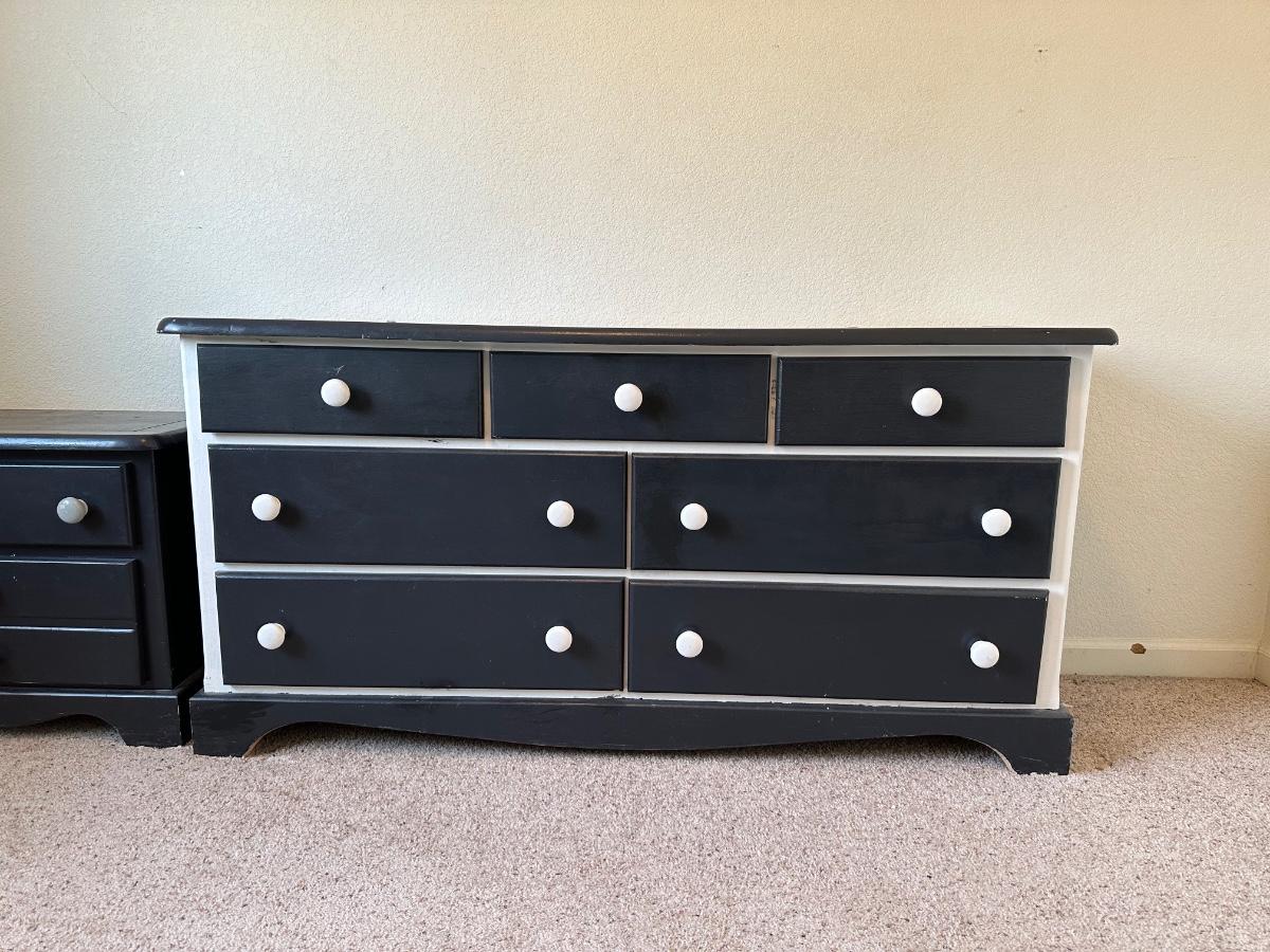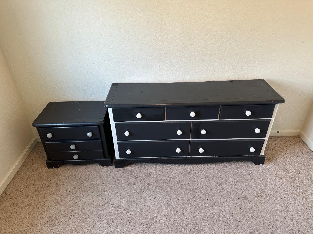 PAINTED WOODEN DRESSER AND NIGHT STAND