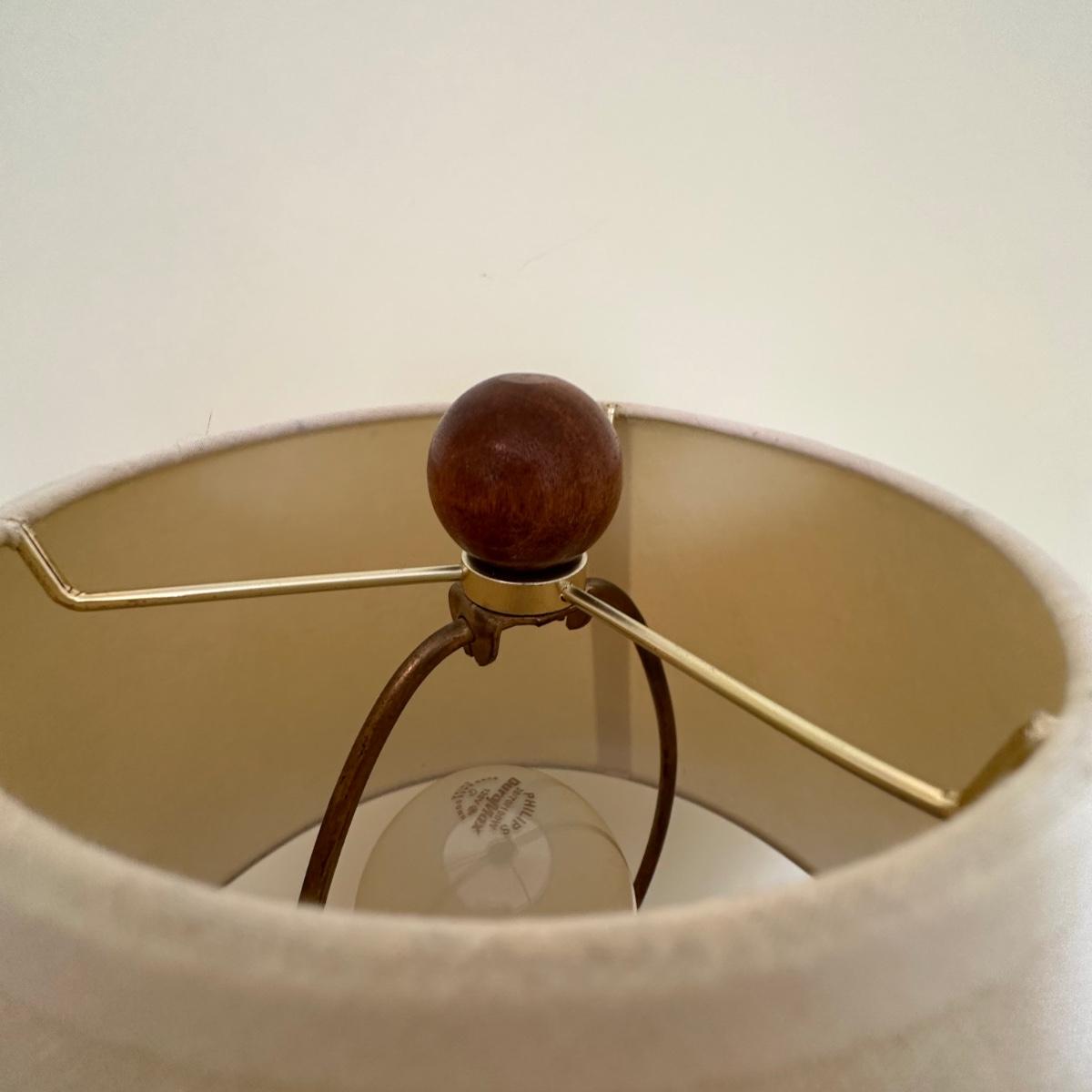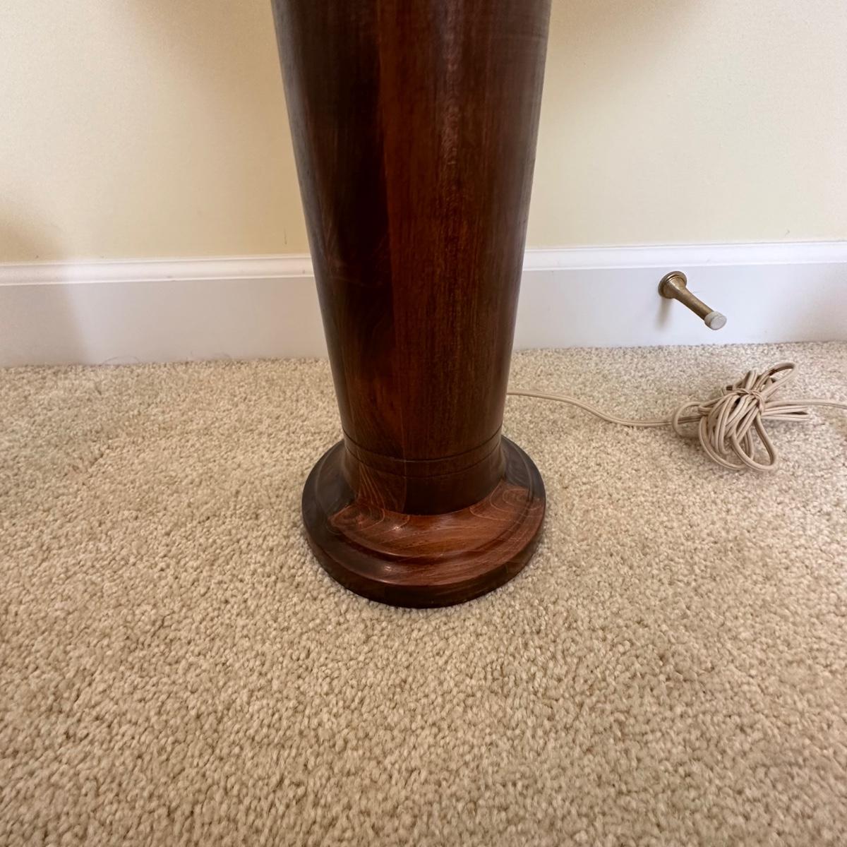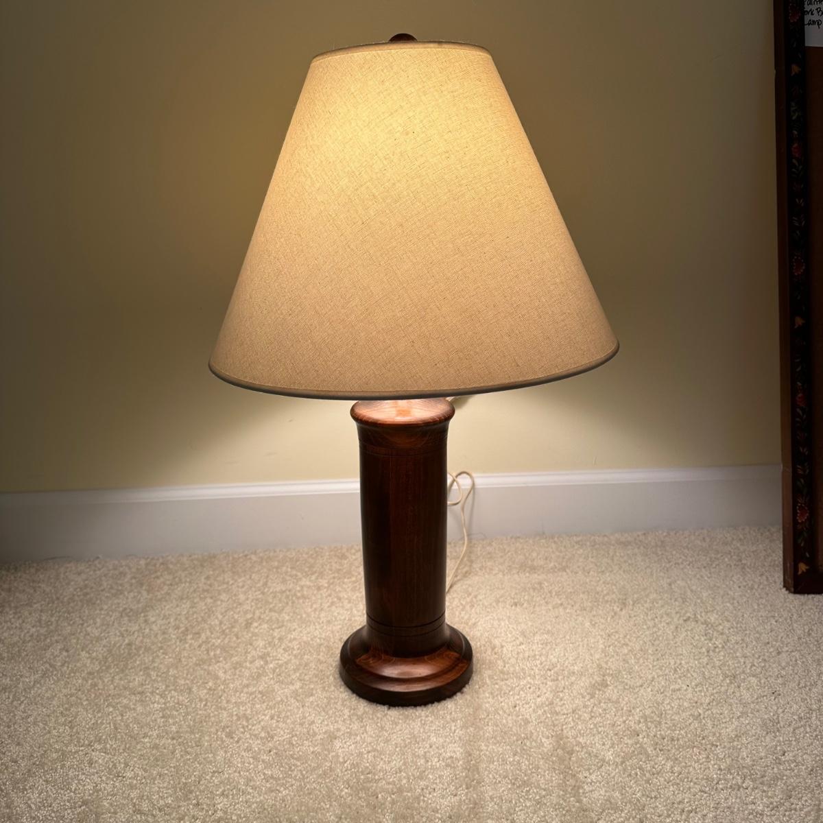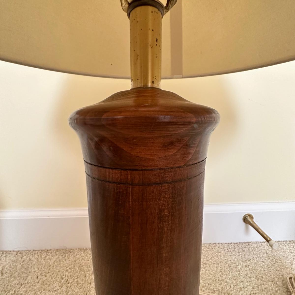 Floral painted wooden framed cork board measures 32” x 26.5”H. Wooden desk lamp measures 25”H from base to finial. Base measures 6”D. Lamp shade is 11”H. Three-way bulb works when powered on. Shipping available. Shipping can be costly. We suggest contacting our preferred local shipping provider, Postage Express, with dimensions and getting an estimate before bidding: (828) 670-5501 or postageexpress@yahoo.com.