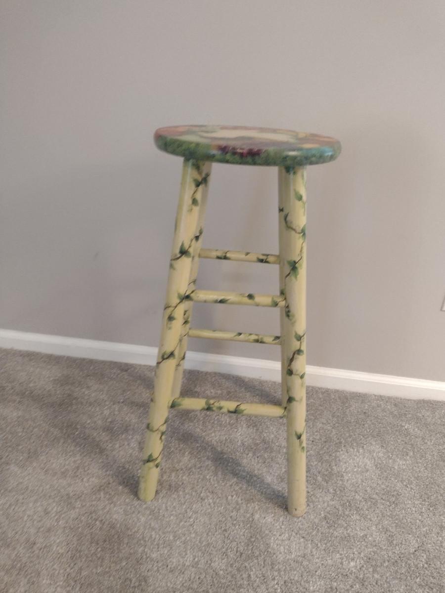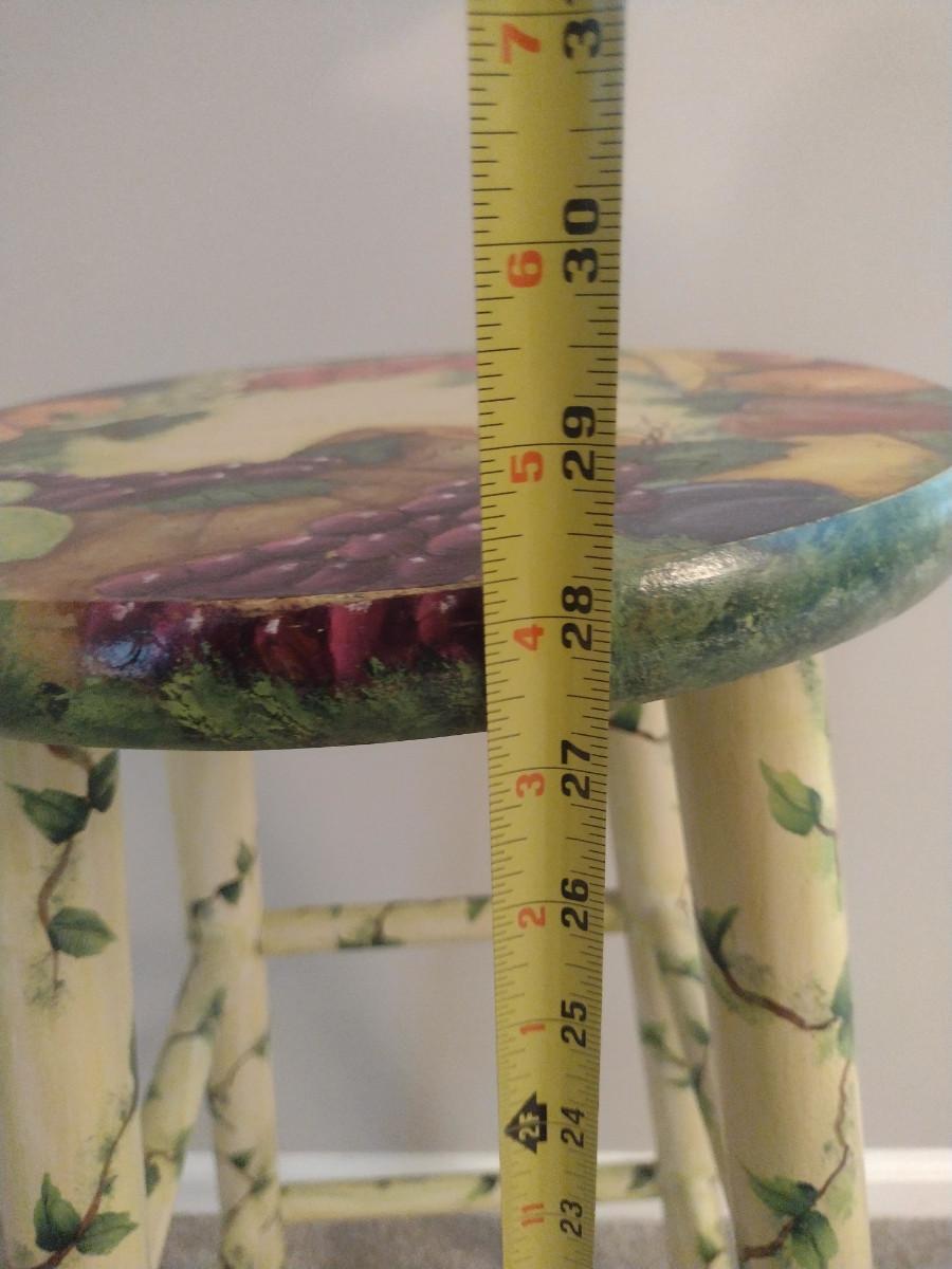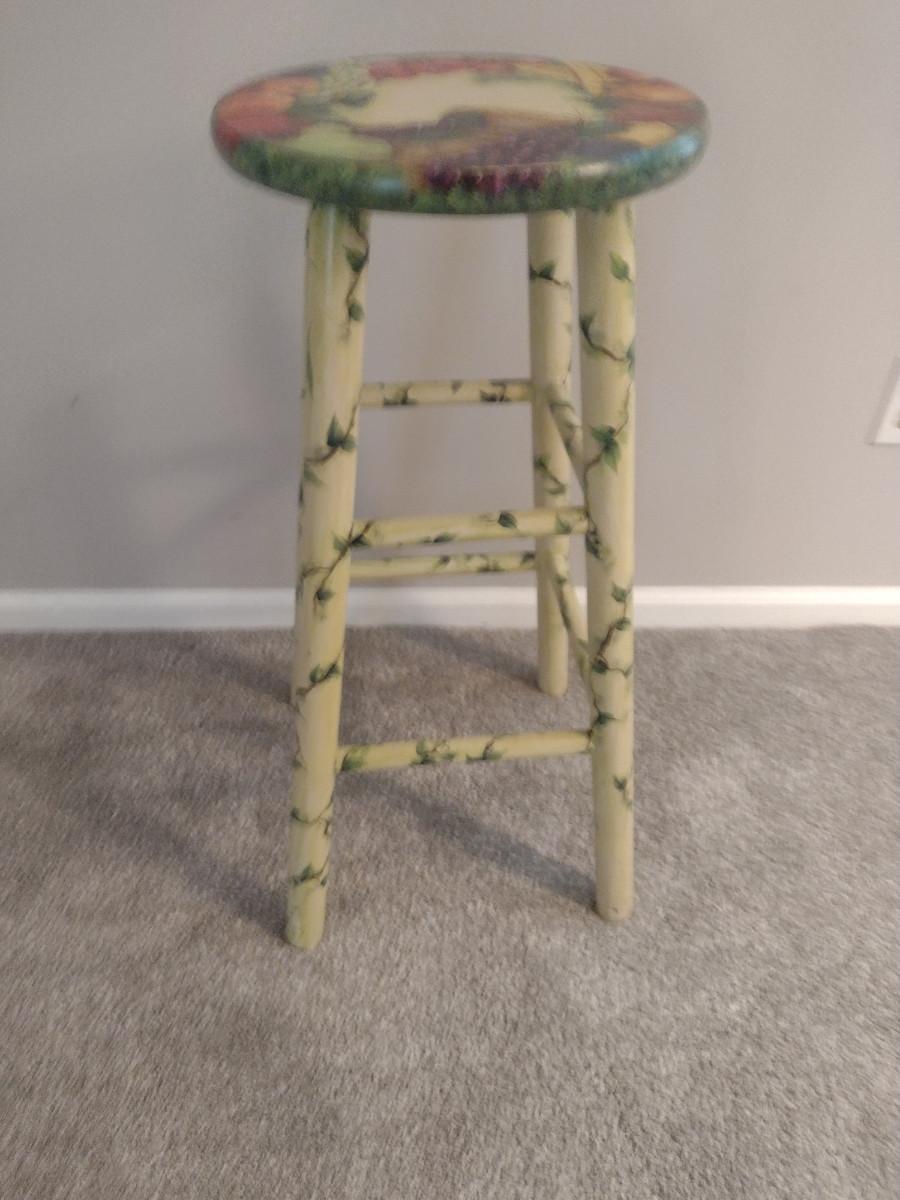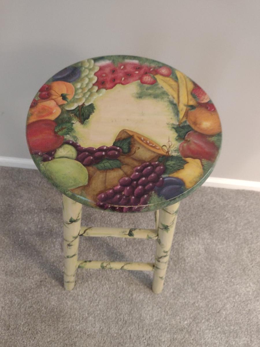 Painted Wooden Stool- Fruit Design- 12 3/4" Wide, 28" Tall