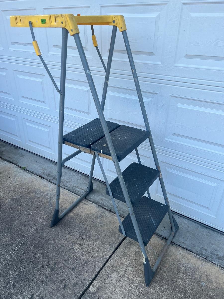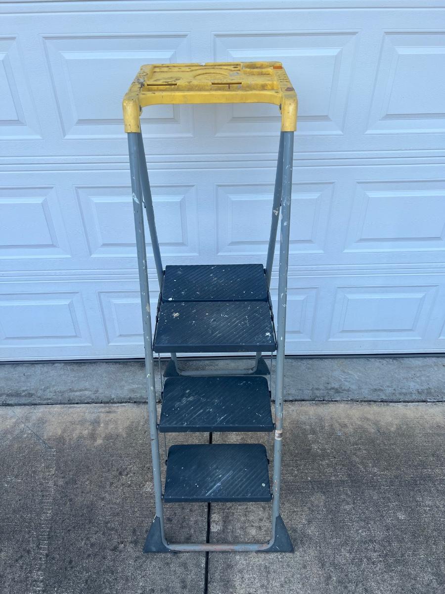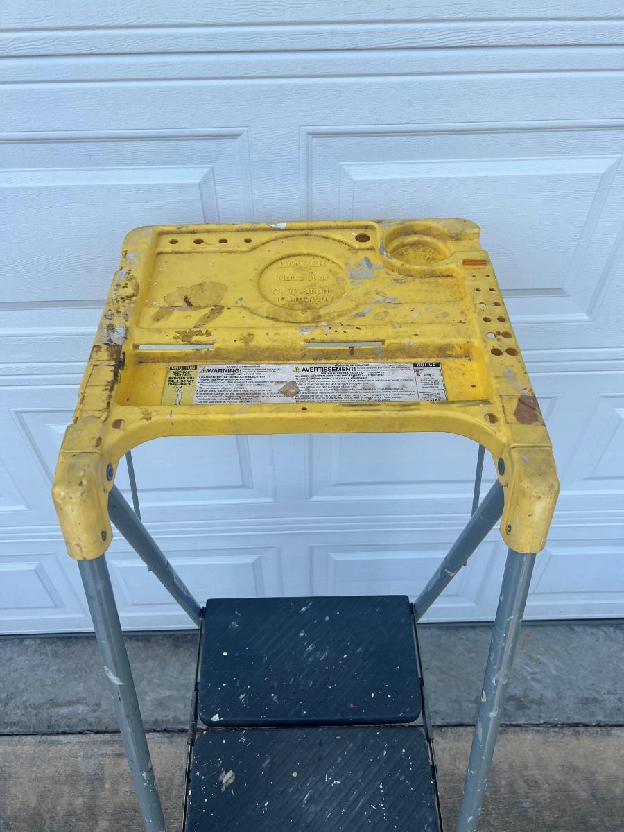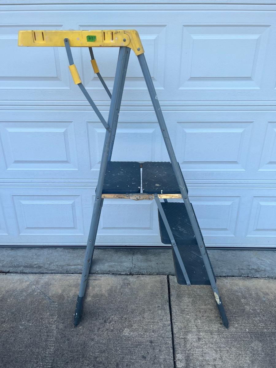 Top step measures 2ft 7in from the ground. Shows signs of use but very solid ladder.