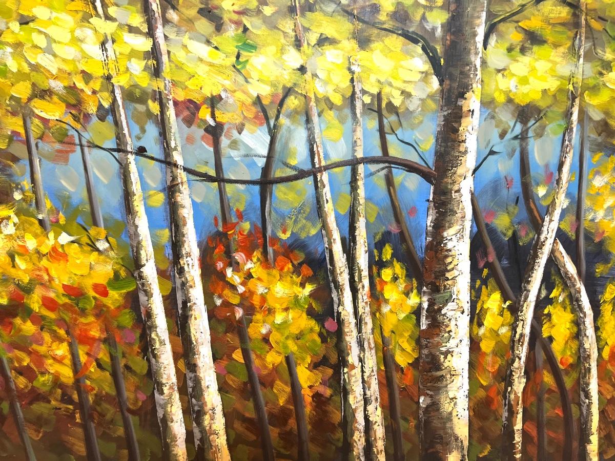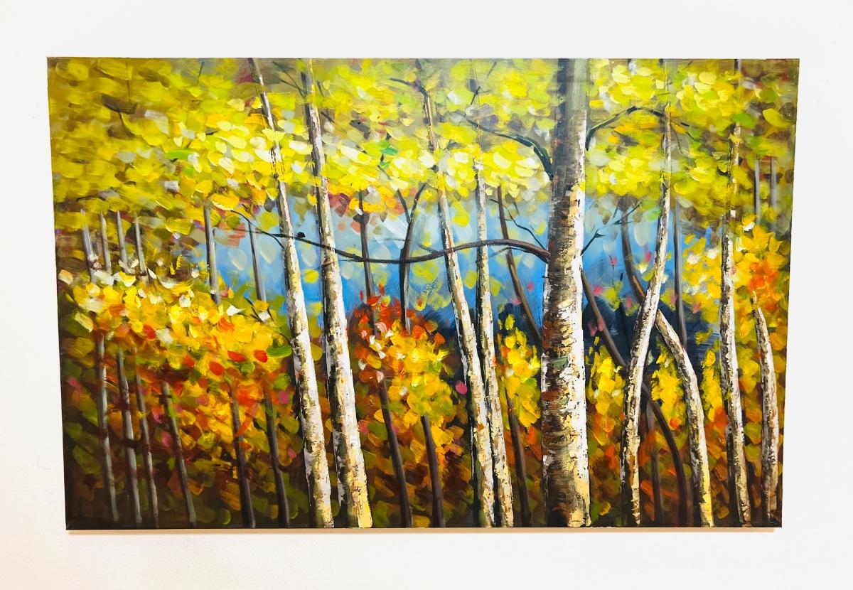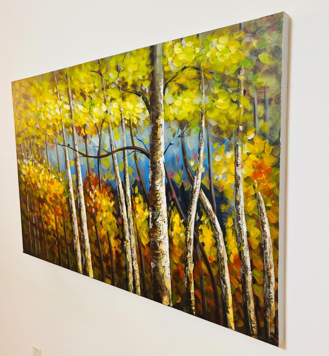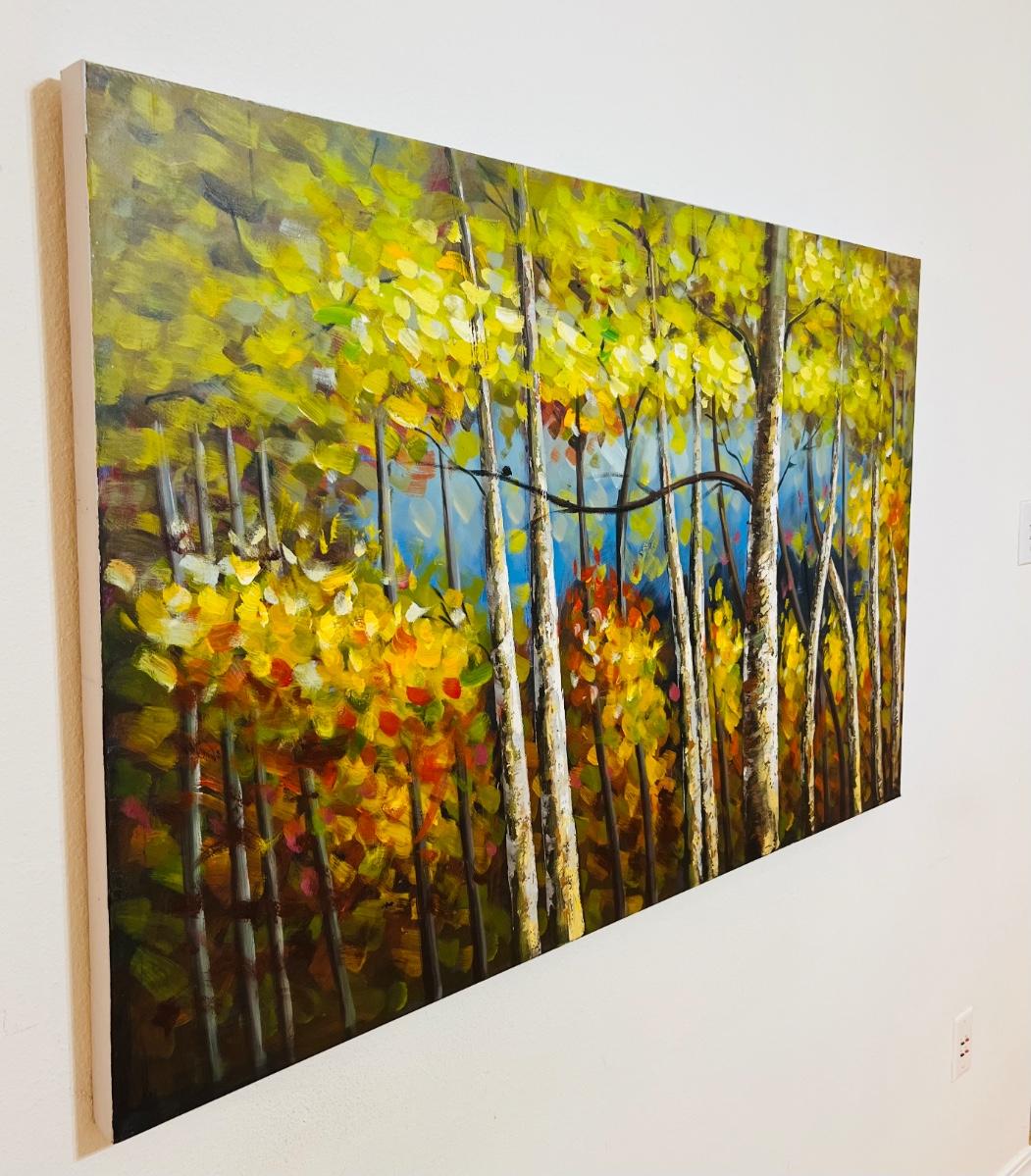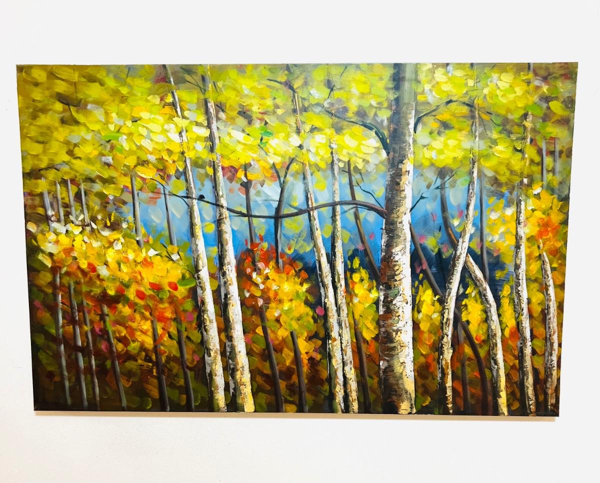 Large Canvas Painting with vibrant colors. Measures 48 inches wide and 31 inches tall.