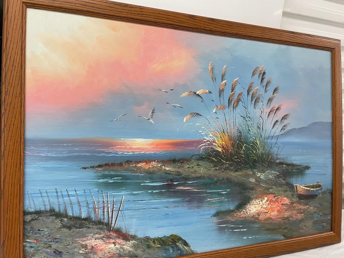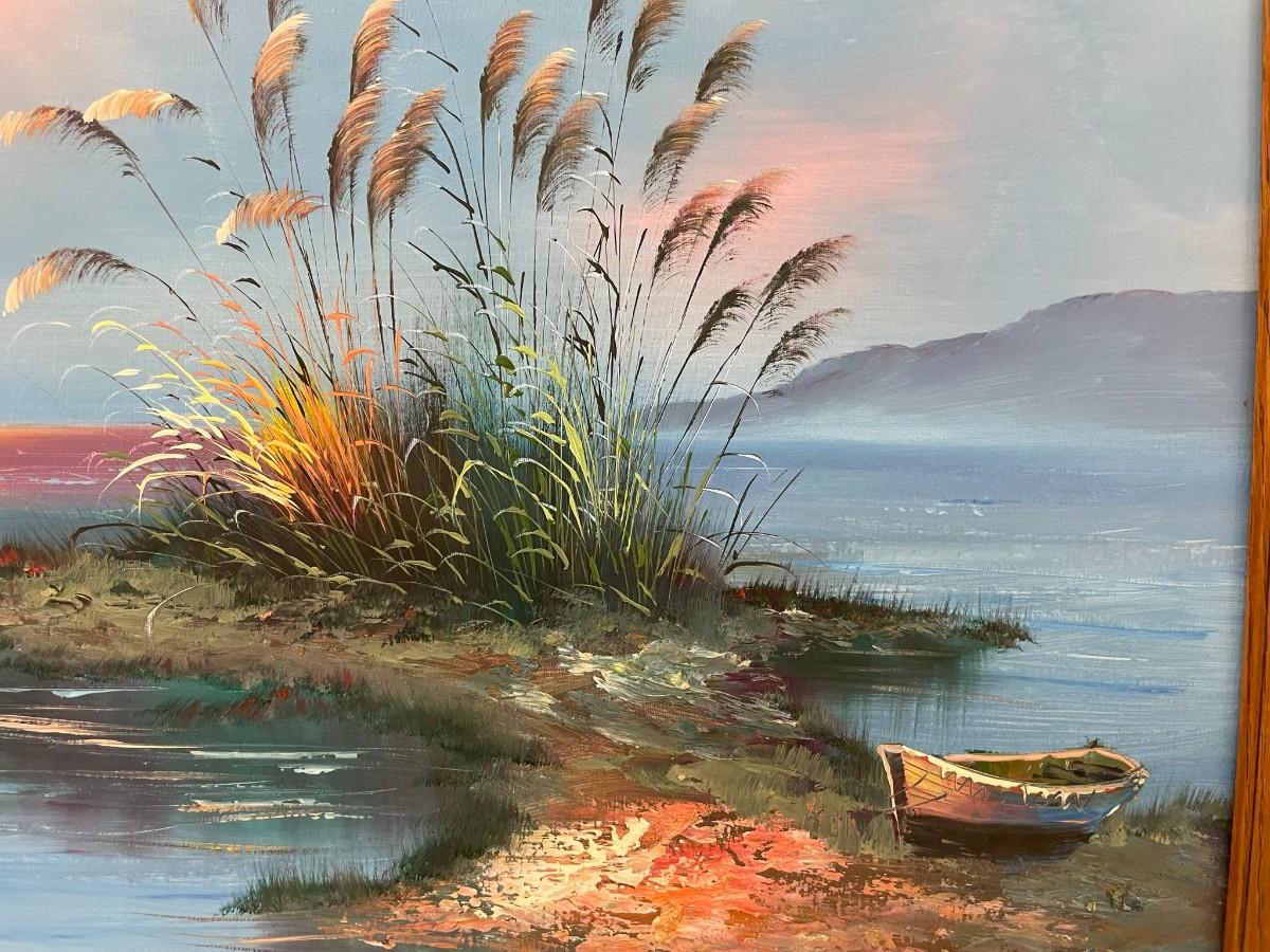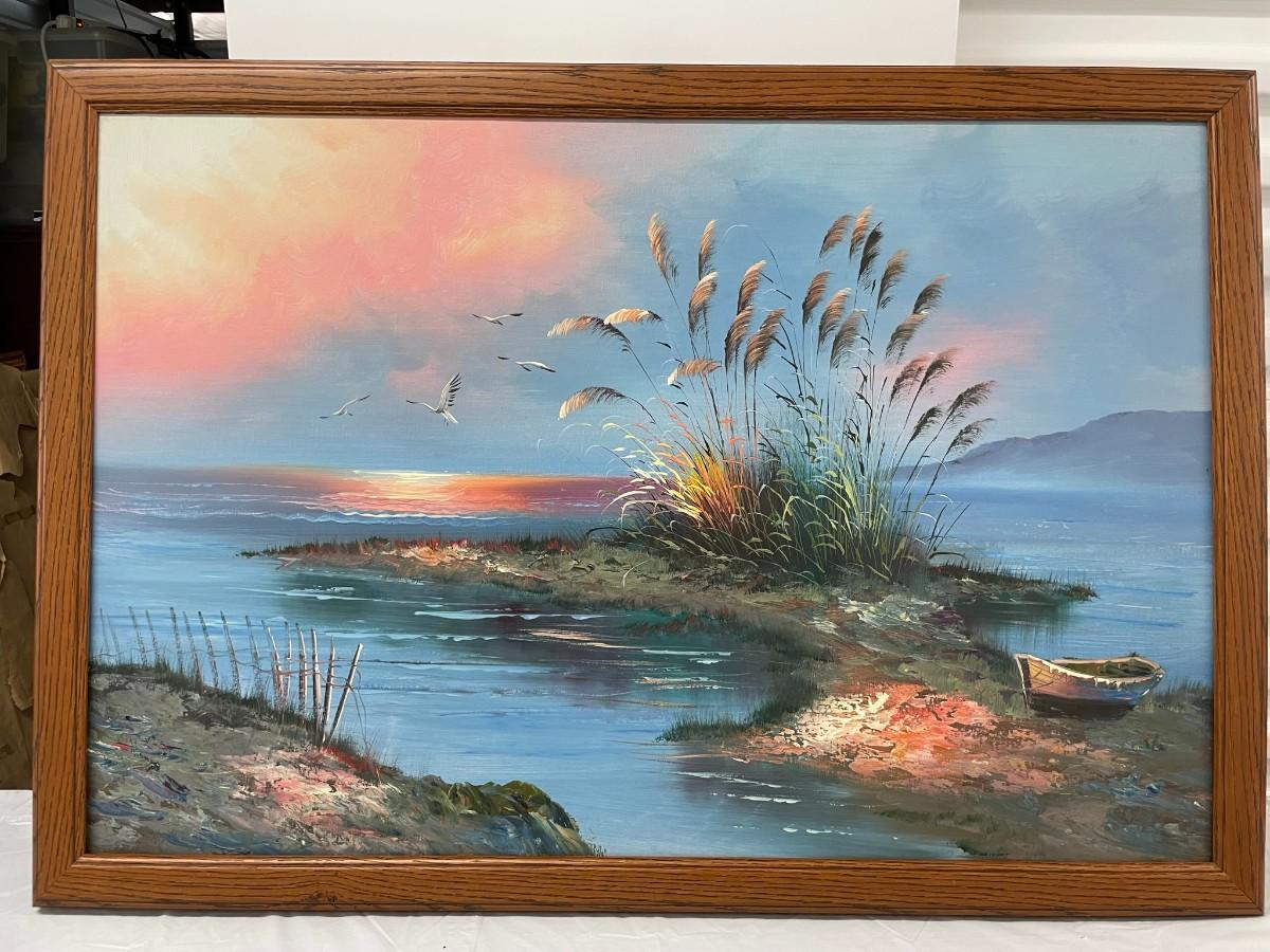 Painting on Canvas (Water/Boat) with Wood Frame 36 X 24