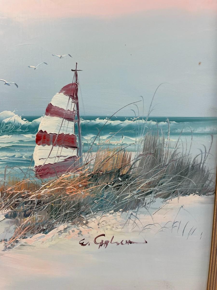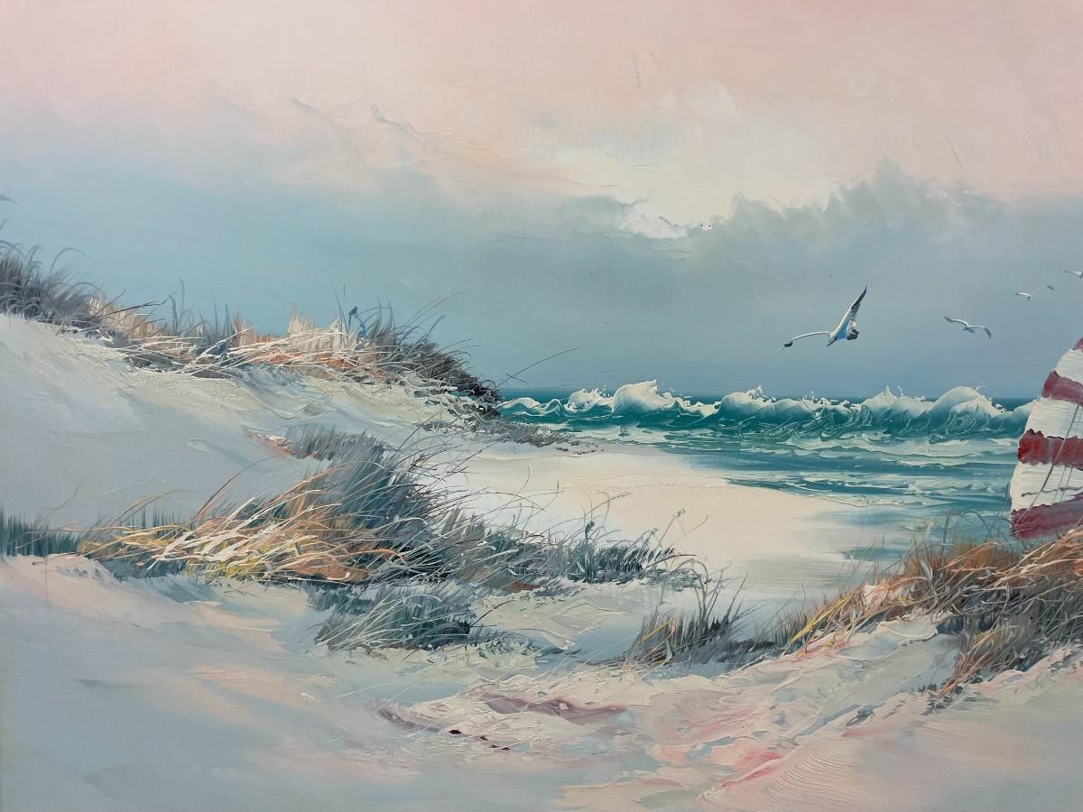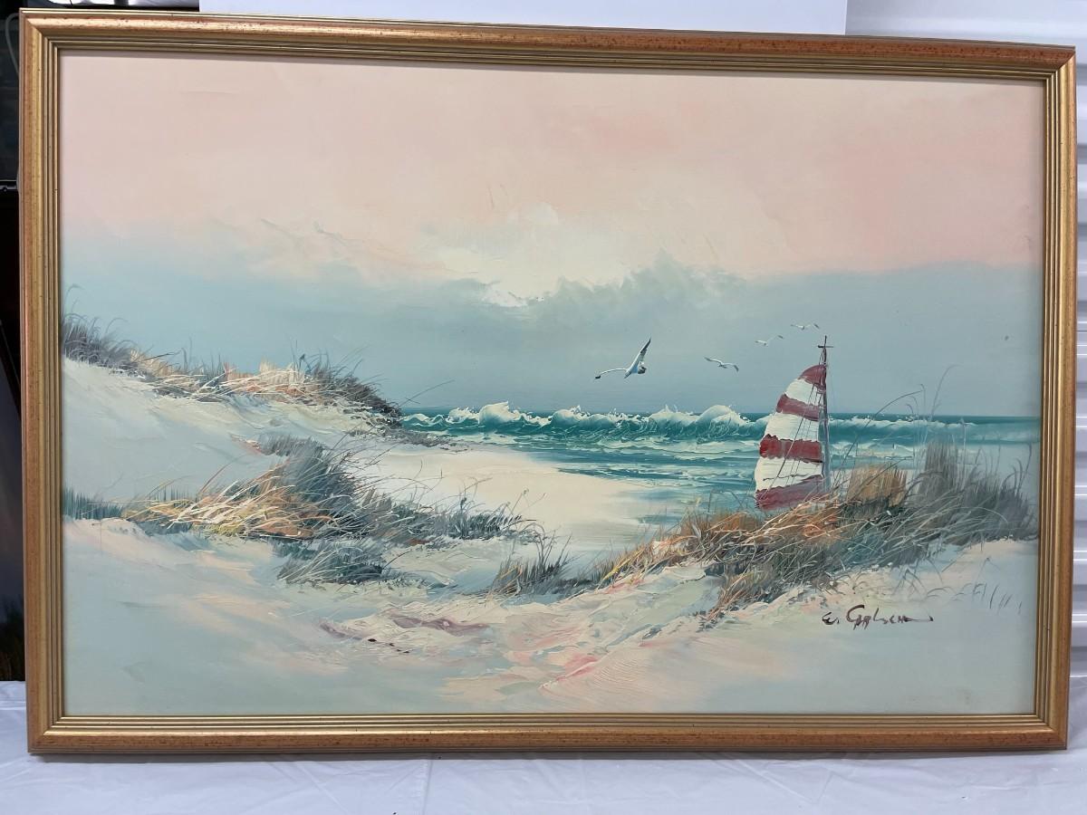 Painting on Canvas (Beach with Ocean) Signed with Wood Frame 36 X 24