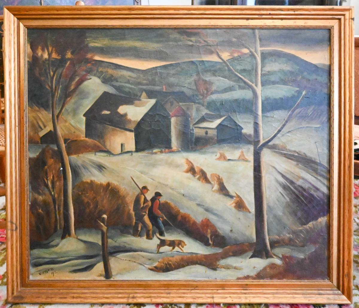 FRAMED OIL PAINTING BY POTIER  - HUNTING SCENE SIGNED POTIER 42