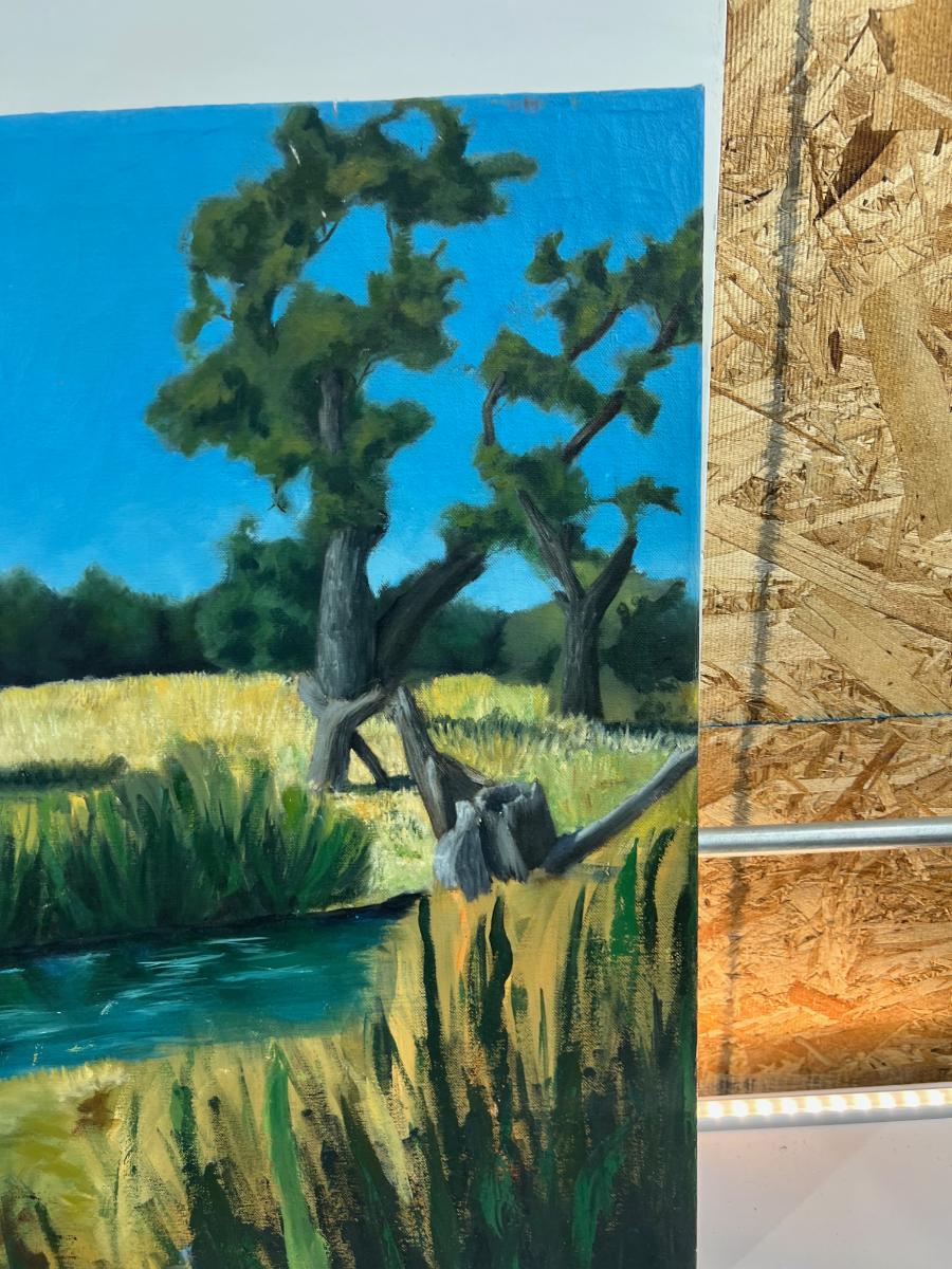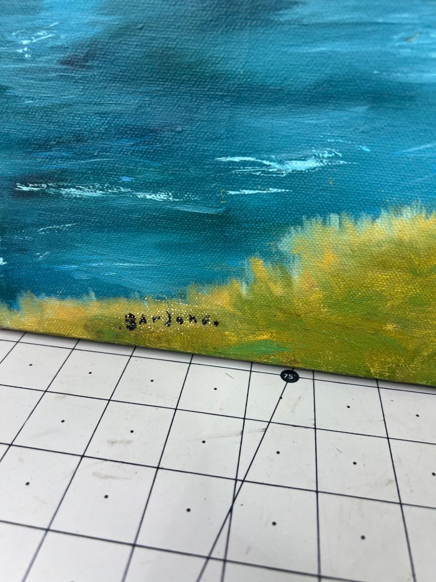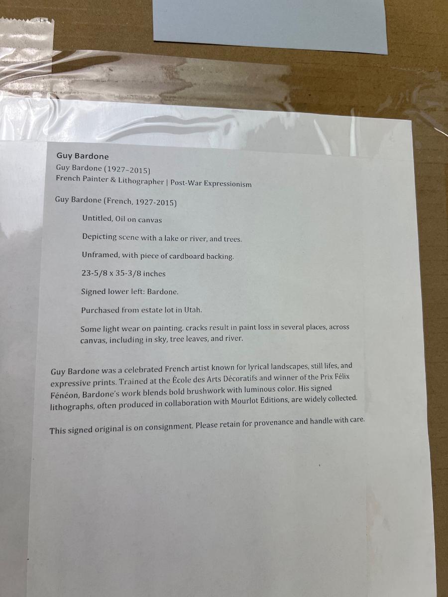 Painting Guy Bardone 1927-2015 Depicting Scene with Lake, Tree, River