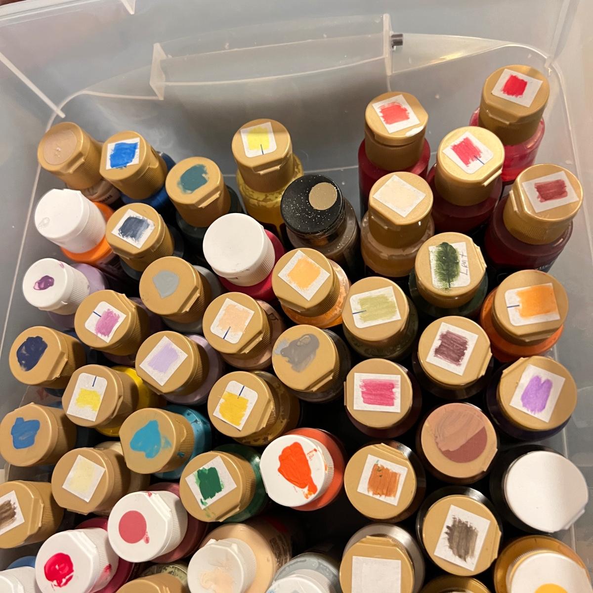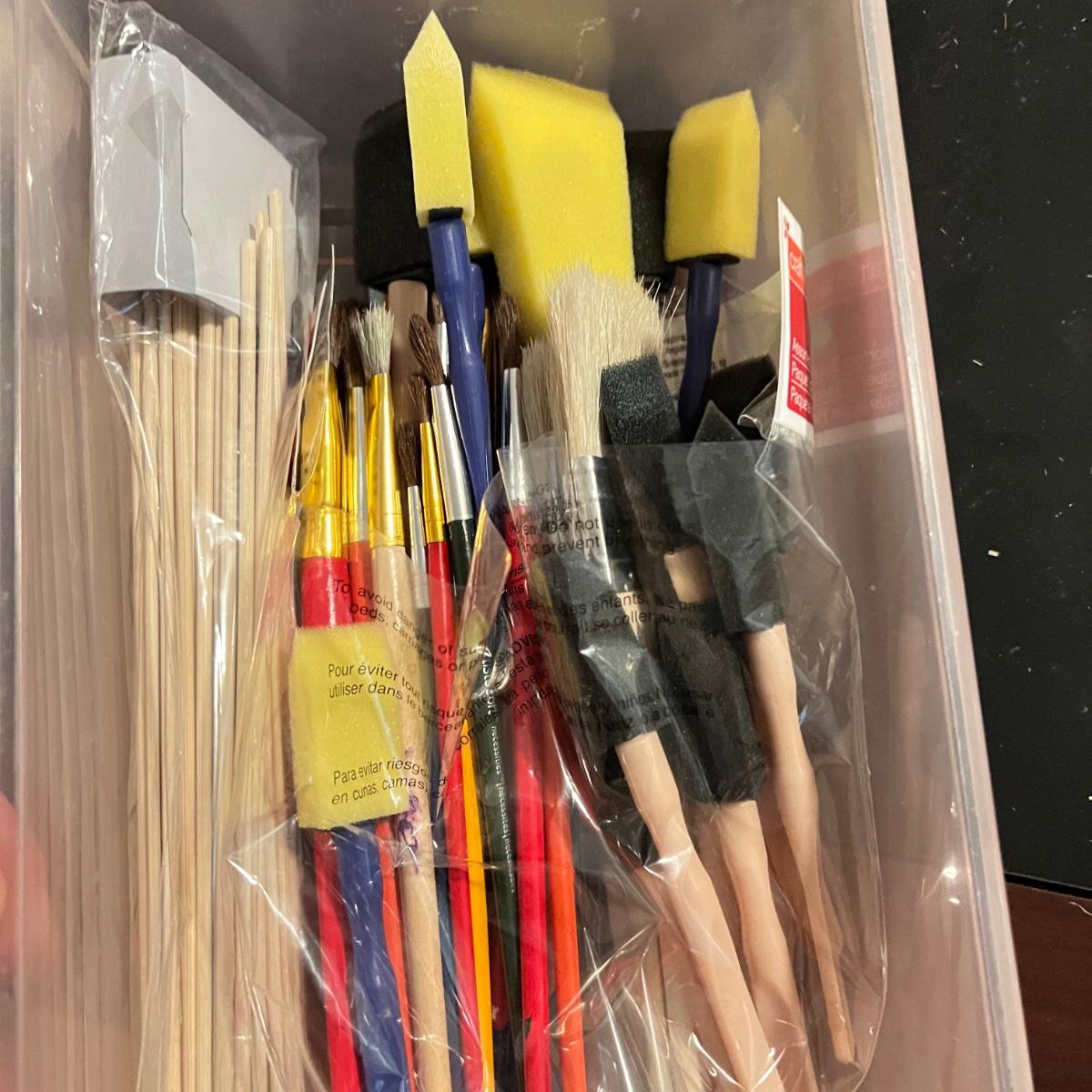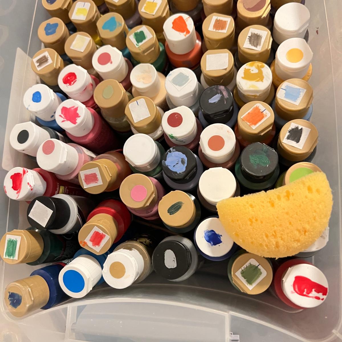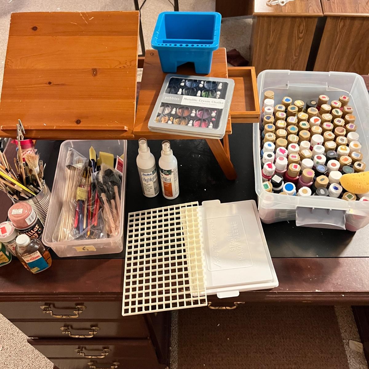 Painting Lot - Acrylic Paints, Brushes, Wooden Laptop Easel Desk, Etc.
