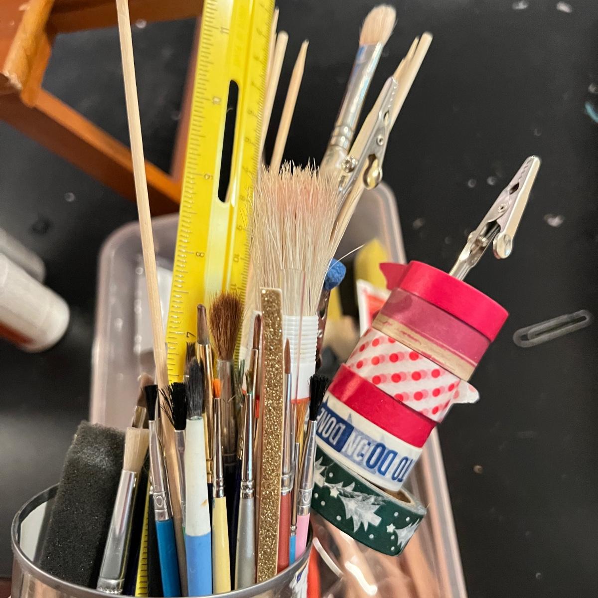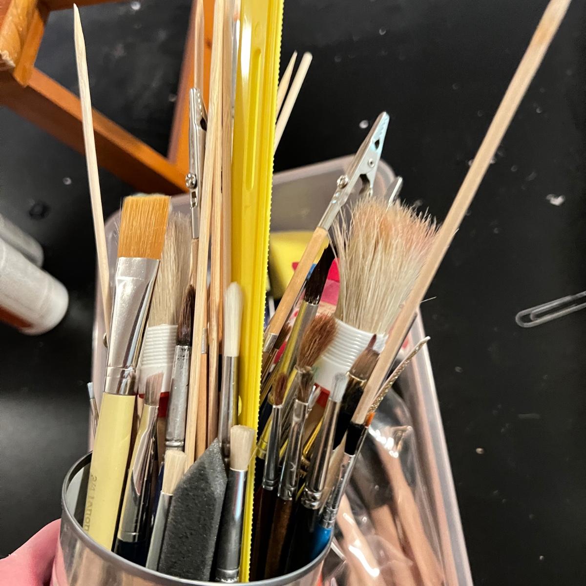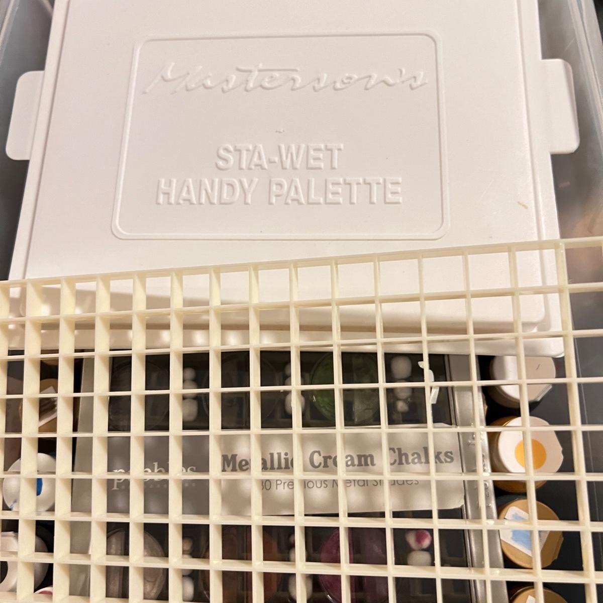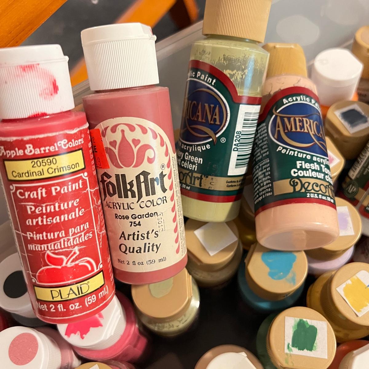 Painting Lot - Acrylic Paints, Brushes, Wooden Laptop Easel Desk, Etc.