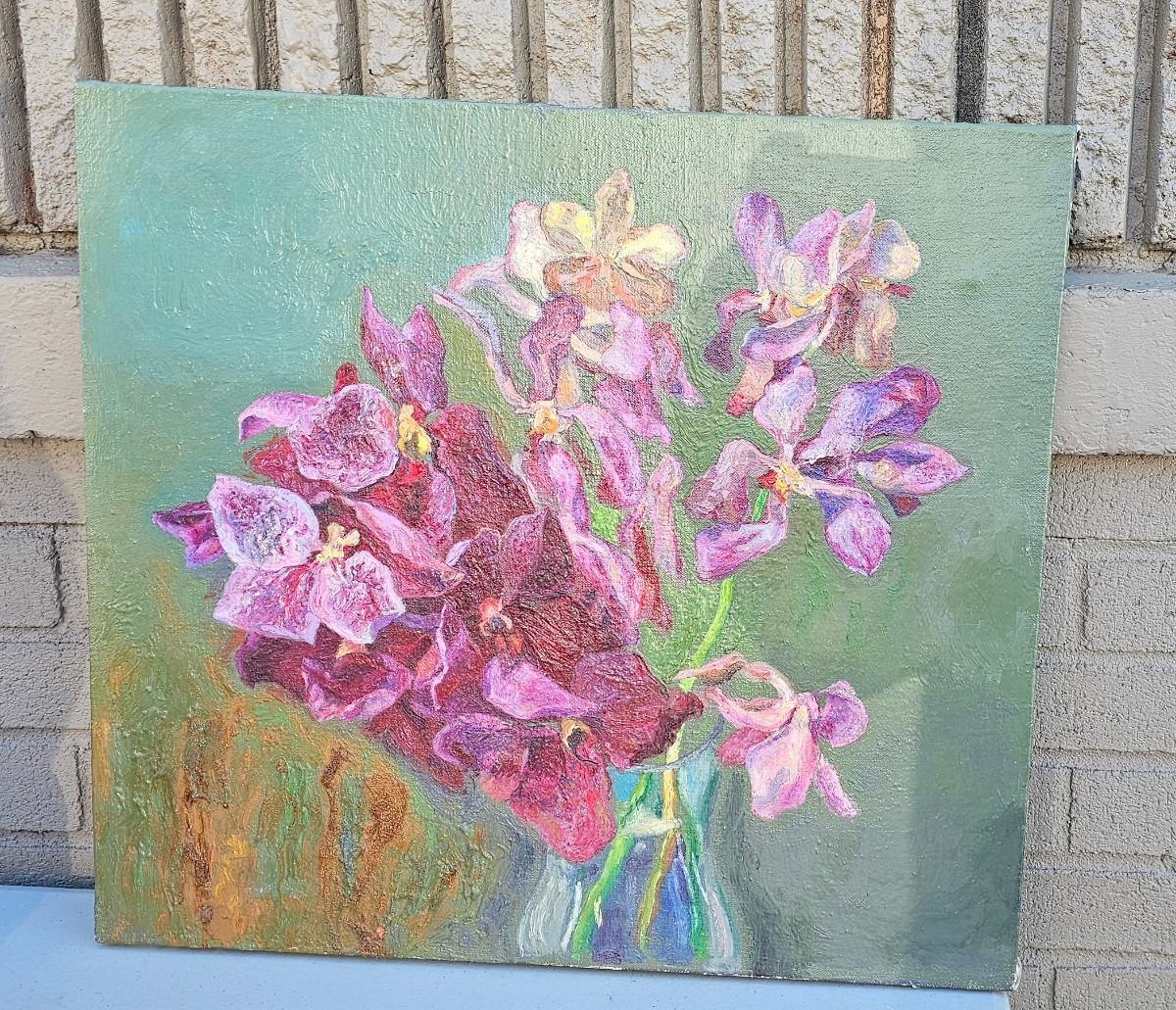 Painting of flowers, pinks and greens