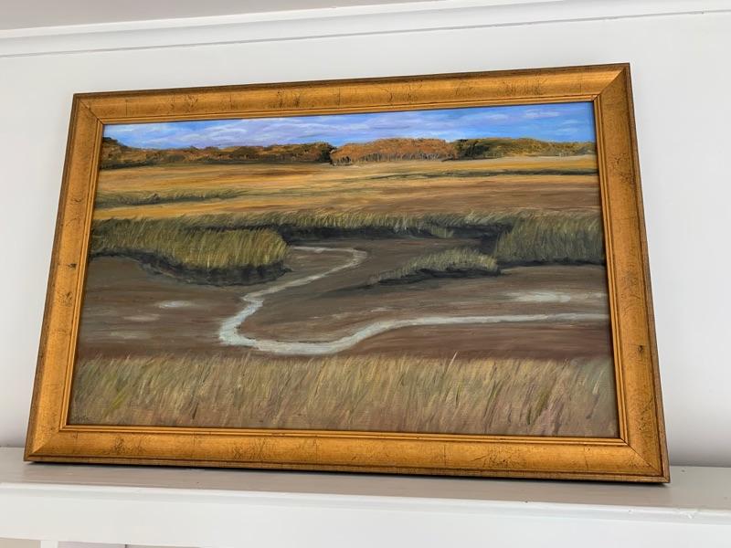 Acrylic on board original painting in gold frame. Cape Cod scene, signed D. Martin