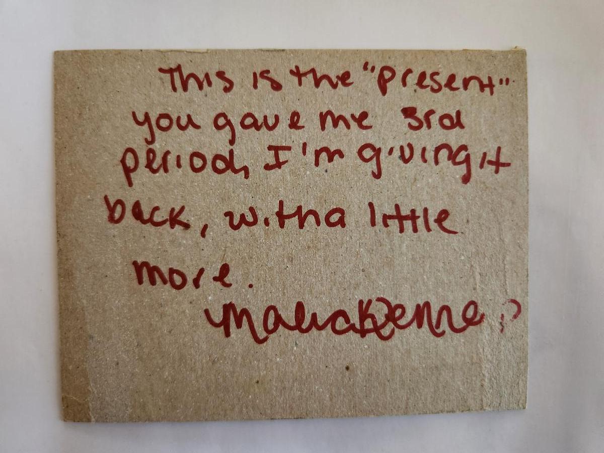 This auction lot is for an interesting Painting on Cardboard Stock. The note on the verso indicates that a student of Fr. McGill's - he taught at several Louisville area high schools - was responsible for this unique piece. Measures about 4.5X5-inches.